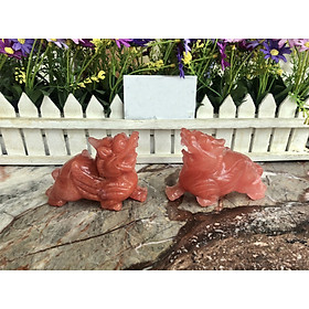 ✨Cặp Tỳ Hưu phong thủy đá núi lửa Obsidian đỏ - Dài 10 cm