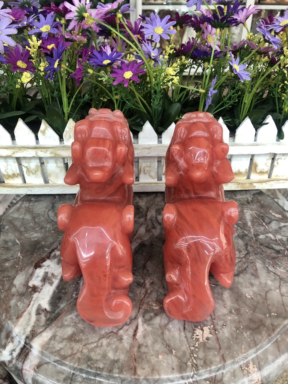 ✨Cặp Tỳ Hưu phong thủy đá núi lửa Obsidian đỏ - Dài 15 cm