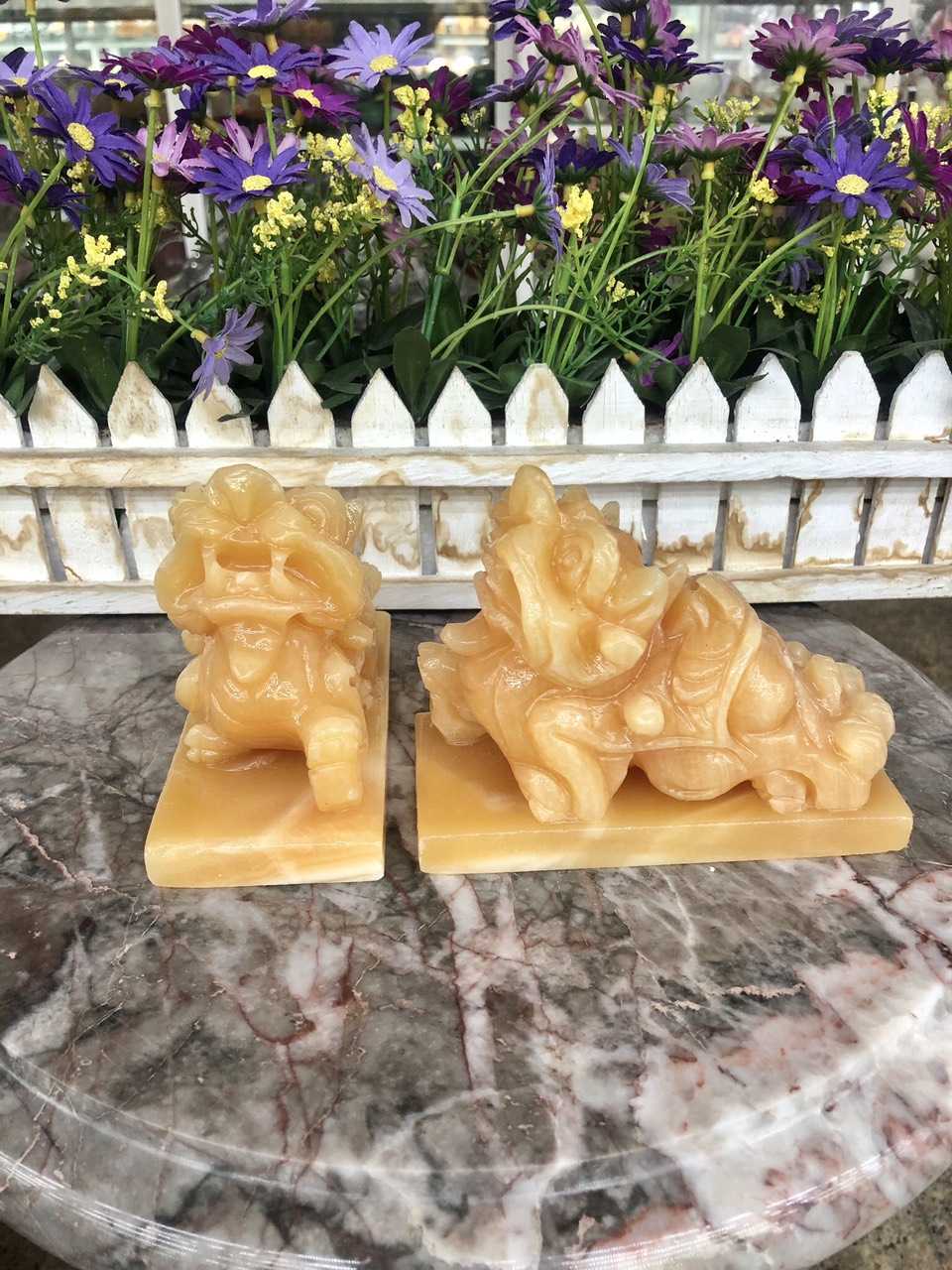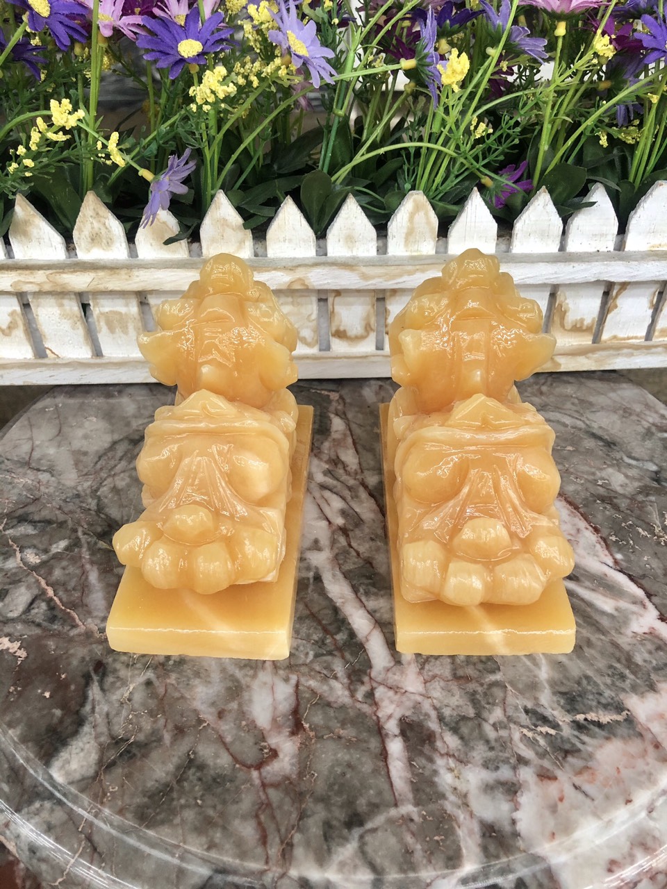 Cặp tỳ hưu vàng Ngọc hoàng long 16cm kèm đế
