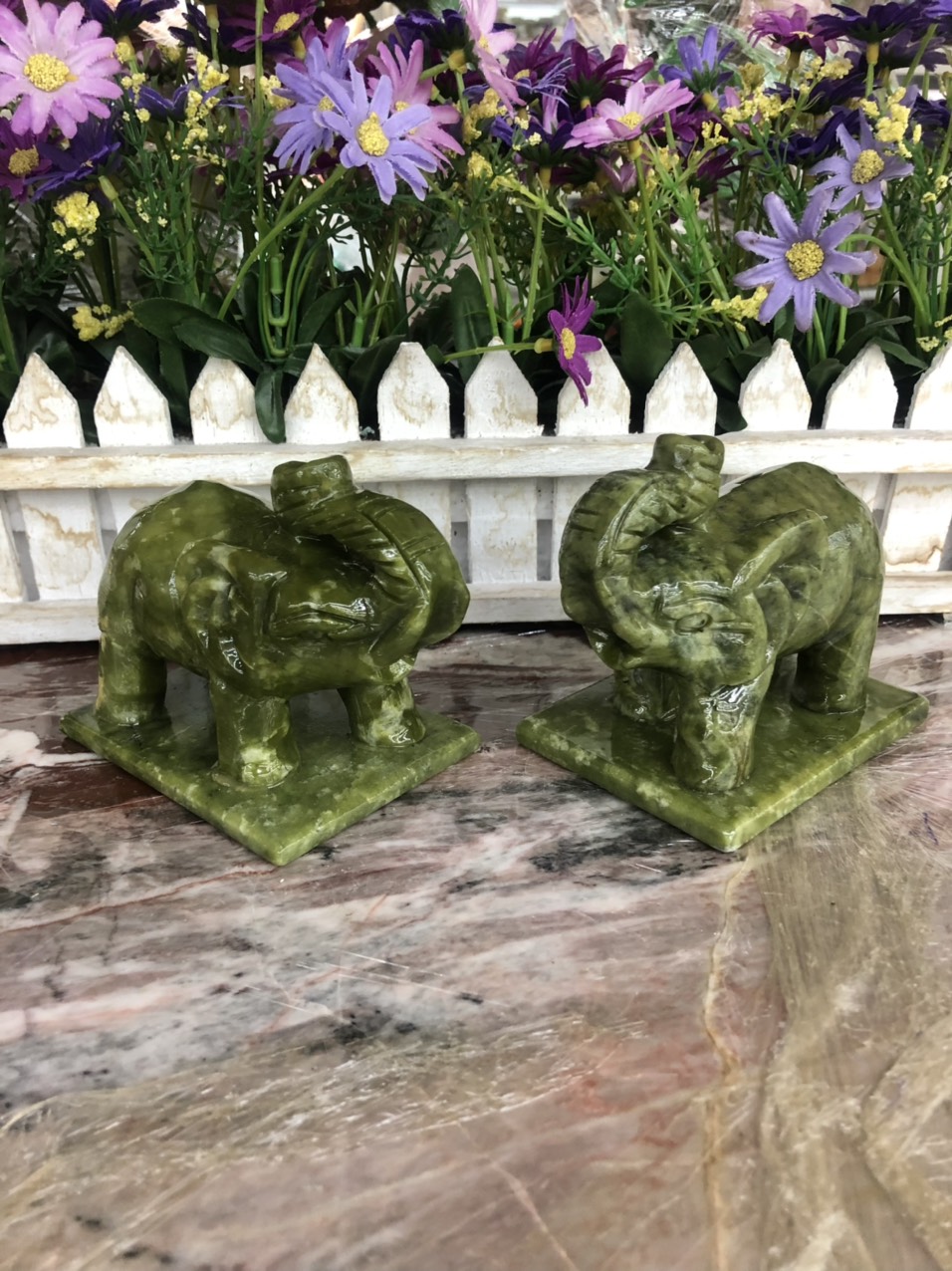 Chất liệu: Đá ngọc serpentine Kích thước: Dài 10 cm x Rộng 7 cm x Cao 8 cm Khối lượng: 1,17 kg Ý nghĩa của hình tượng voi phong thủy Voi là loài vật tượng