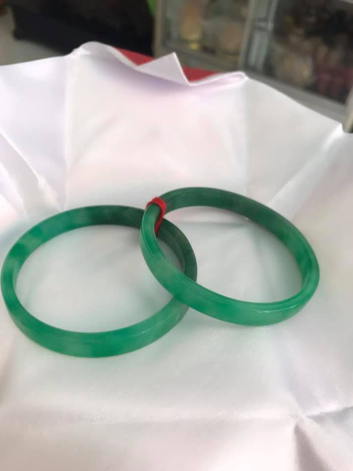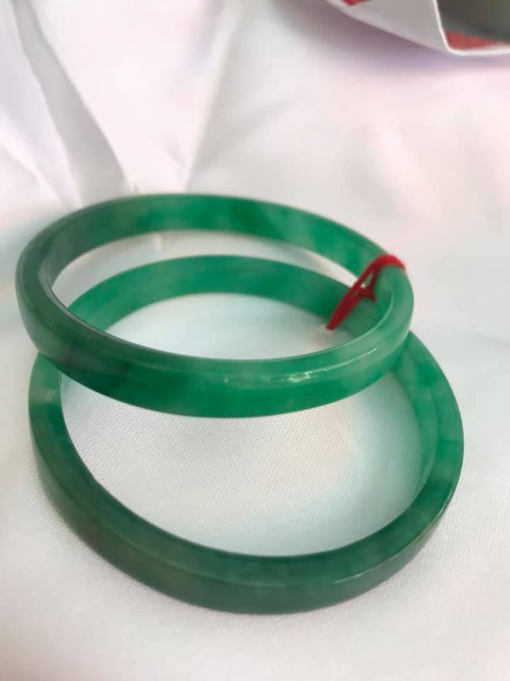 ✨Cặp Vòng Cẩm Thạch Bản Vuông 52mm Xanh Ngọc Lý Đậm Bóng Đẹp Ni 52mm x cao 7mm x dầy 4mm Nữ Mạng Thủy Mộc Hỏa 50kg -> 56kg đeo ạ