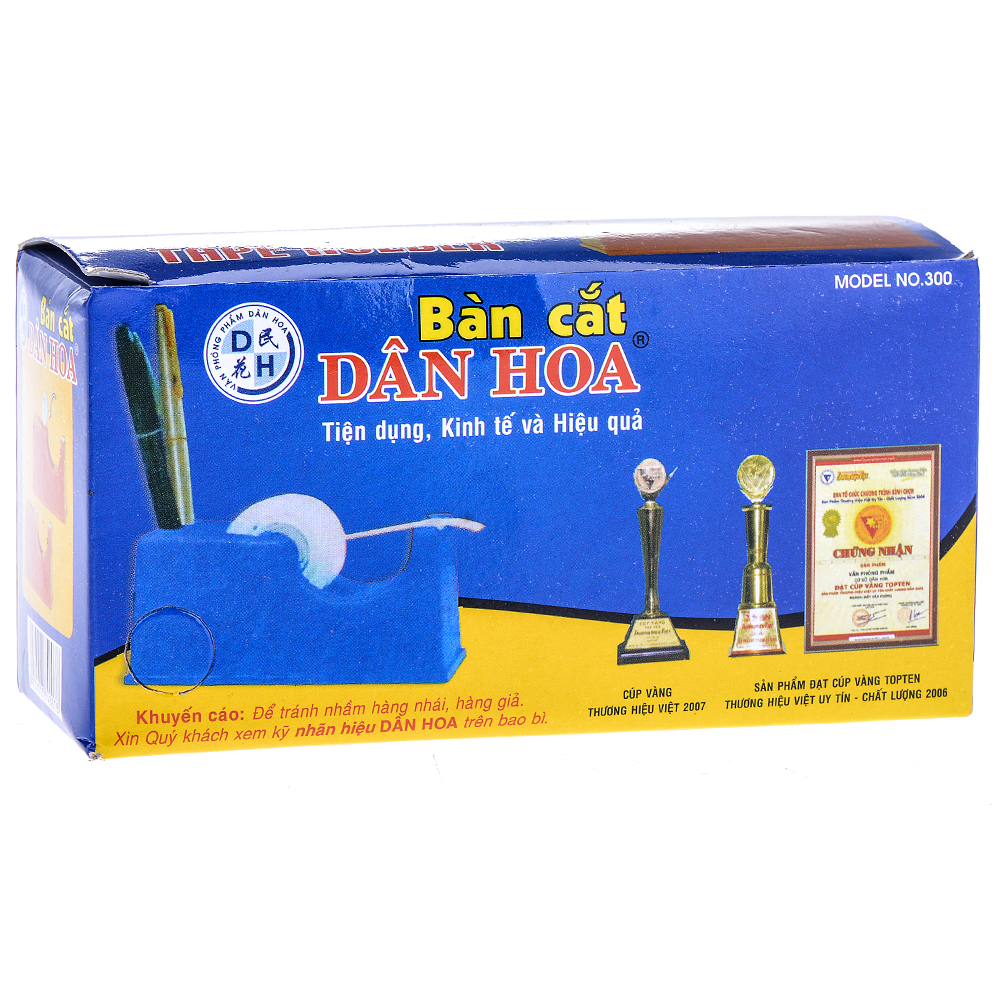 Cắt Băng Keo Để Bàn Dân Hoa 350 Sản phẩm có thiết kế nhỏ gọn, để bàn, được sử dụng để cắt băng keo. Thân dao được làm bằng nhựa, lưỡi dao làm bằng kim loại
