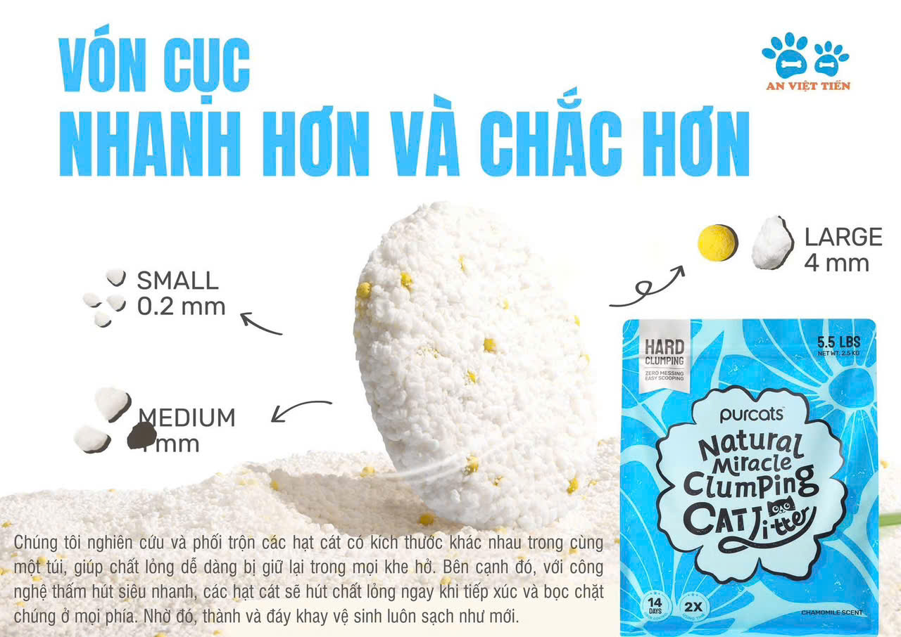 Khả năng thấm hút vượt trội + vón cục nhanh + hiệu suất nén cao + giữ mùi lâu = thời gian sử dụng GẤP ĐÔI so với cát vệ sinh thông thường