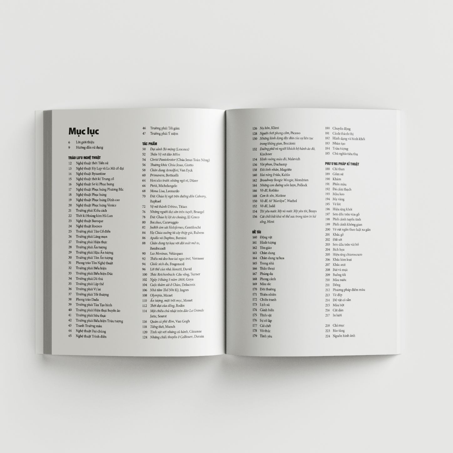 Cuốn sách này là một cẩm nang ngắn gọn giới thiệu cho bạn đọc về 55 trào lưu, trường phái và phong cách thịnh hành từ thời kỳ bình minh hé sáng của nghệ thuật