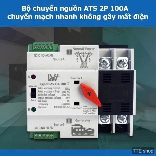 Cầu Dao Đảo Chiều Tự Động 100A – Không Mất Điện Khi Chuyển Nguồn, Dùng Cho 2 Công Tơ