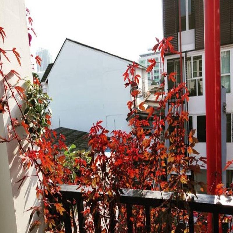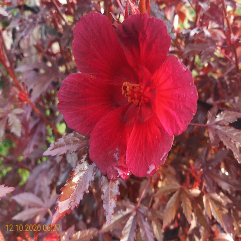 Cây bụp giấm là một loài dâm bụt nét độc đáo của hình dáng và màu sắc lá. Lá của cây màu đỏ tía, cắt nhuyễn như lá phong tạo không gian rất đẹp cho sân vườn. Bụp giấm đỏ là cây bụi, ra hoa quanh năm, hoa có màu đỏ trầm, hình phễu với 5 cánh uốn nhẹ.
