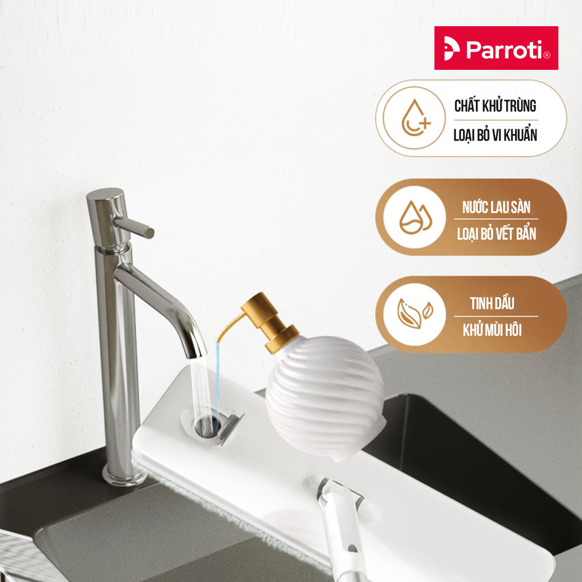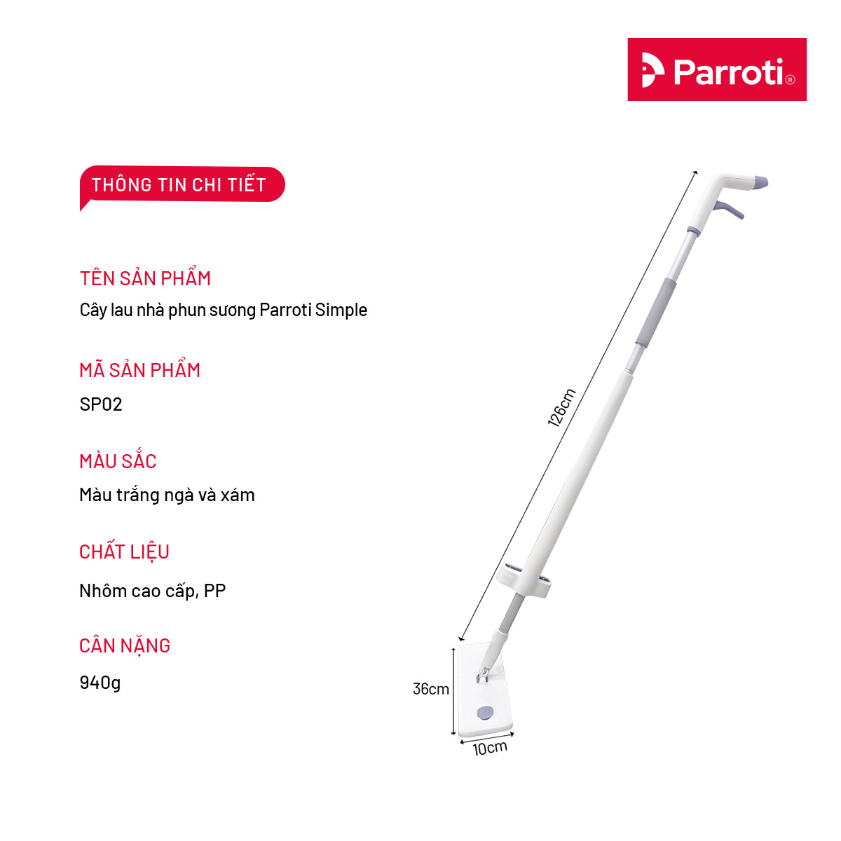 CÂY LAU NHÀ TỰ VẮT THÔNG MINH, CHỔI LAU NHÀ PHUN SƯƠNG 3 TRONG 1 PARROTI SIMPLE SP02