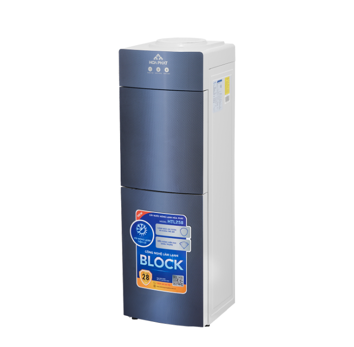 - Bảo hành vượt trội lên tới 28 tháng CÂY NƯỚC NÓNG LẠNH ÚP BÌNH HÒA PHÁT HTL258 Là cây nước nóng lạnh Hòa Phát thế hệ mới sử dụng công nghệ BLOCK làm lạnh nước nhanh và sâu tới 5 độ C, công suất làm nóng cao vượt trội cho nước nóng tới 95 độ chỉ sau 2 phút. Sản phẩm được thiết kế tinh tế, sang trọng, vỏ nhựa ABS sơn tĩnh điện trơn láng, làm đẹp thêm không gian gia đình. NƯỚC LẠNH SÂU TỚI 5 ĐỘ C VỚI CÔNG NGHỆ BLOCK ƯU VIỆT Hệ thống lạnh dùng công nghệ Block hiệu suất cao BLOCK R134a giúp máy làm lạnh nước vượt trội, nước lạnh nhanh hơn chỉ trong 30 phút và lạnh sâu tới 5 độ C, đồng thời tiết kiệm điện năng và vận hành bền bỉ hơn. Cùng dung tích bình lạnh lên tới 3,3 lít, cây nước nóng lạnh Hòa Phát đảm bảo khả năng cung cấp nước lạnh liên tục đáp ứng mọi nhu cầu, phù hợp với mọi không gian như gia đình, văn phòng, trường học, công xưởng, bệnh viện, nơi công cộng,... LÀM NƯỚC NÓNG NHANH CHỈ SAU 2 PHÚT VỚI CÔNG SUẤT CỰC KHỎE Cây nước nóng lạnh Hòa Phát thế hệ mới đều có mức công suất bình nóng 580W giúp làm nước nóng nhanh tức thì, thời gian làm nóng dưới 2 phút. Sau mỗi lần tắt công tắc làm nóng, lớp bảo ôn giữ nhiệt lên tới 2,5 giờ mới cần đun lại. Với mức công suất như vậy, cây nước sẽ luôn cung cấp nước nóng nhanh chóng mà vẫn đảm bảo tiết kiệm điện. TÍCH HỢP TÍNH NĂNG AN TOÀN Cây nước nóng lạnh của ĐMGD Hòa Phát được trang bị đầy đủ tính năng an toàn như: Cảnh báo hết nước, bảo vệ quá nhiệt kép, khóa trẻ em đối với vòi nước nóng, an toàn tuyệt đối trong quá trình sử dụng. BẢO HÀNH LÂU NHẤT THỊ TRƯỜNG TỚI 28 THÁNG Với định vị "Bền - Chuẩn Hòa Phát", các cây nước nóng lạnh trong BST Thế hệ mới đều có thời gian bảo hành vượt trội lên tới 28 tháng, khách hàng an tâm, thoải mái sử dụng lâu dài. THIẾT KẾ HIỆN ĐẠI, TINH TẾ\ Sở hữu thiết kế tối giản, hiện đại, cây nước nóng lạnh Hòa Phát HTL258 sẽ giúp không gian gia đình thêm phần tinh tế nhờ tích hợp 2 cửa đóng kín ngăn bụi bẩn vòi nước đồng thời có khoang chứa đồ rộng rãi, cất chứa được nhiều ly tách, tăng tính gọn gàng cho sản phẩm.