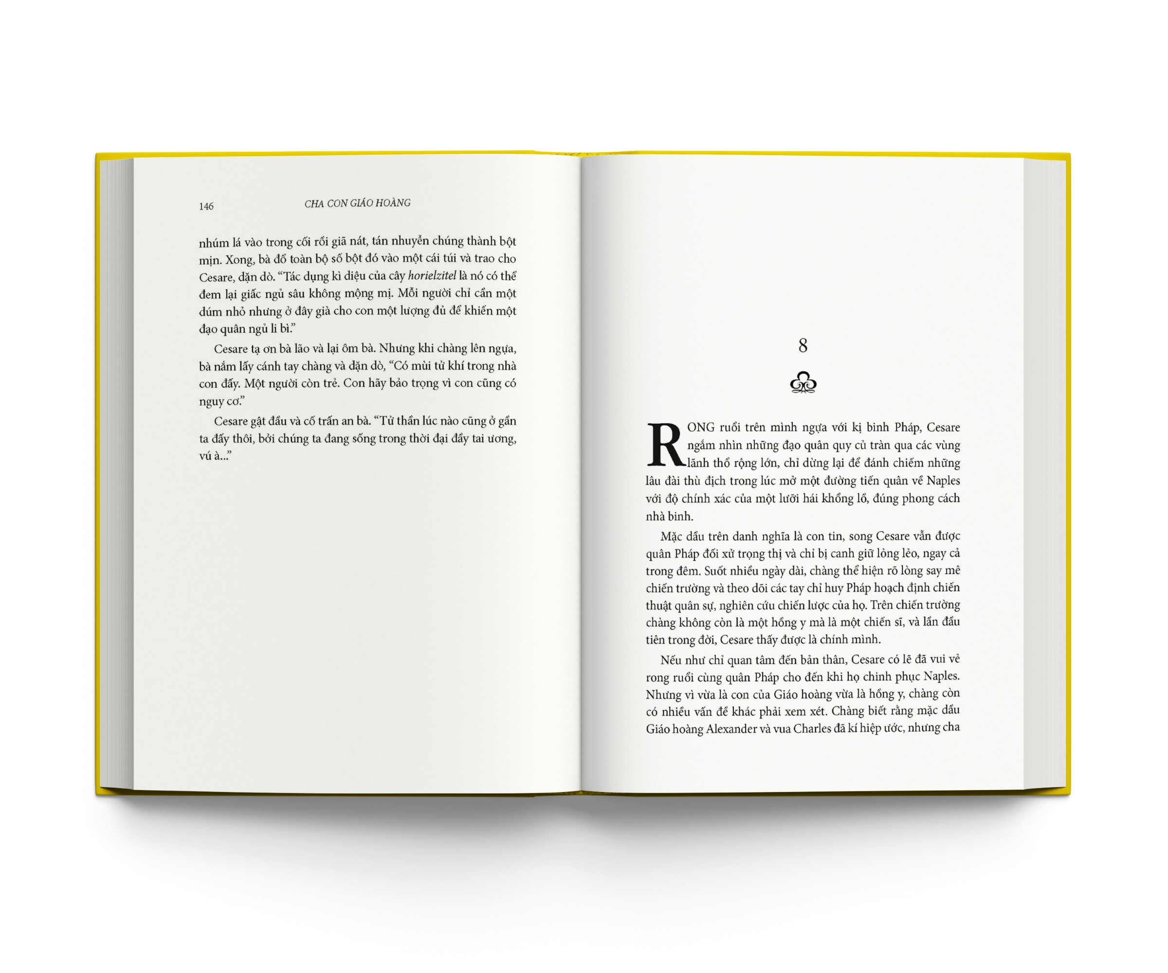 Cha con Giáo hoàng là một thiên sử thi xuất sắc, pha trộn màu sắc lãng mạn với chất cuồng điên của lòng tham quyền lực, những mưu ma chước quỷ, tội lỗi và trừng phạt… vượt xa khỏi trí tưởng tượng của người thường. Cuốn sách mang người đọc du hành đến một không gian, thời gian hoàn toàn khác, nơi Giáo hội nắm quyền thống trị tối cao, nơi lửa tham vọng ngùn ngụt cháy dưới tấm áo choàng đỏ rực. Đây là câu chuyện về mối quan hệ cha con kì lạ: gắn bó với nhau bởi huyết thống, lòng tận tụy và những ý đồ đen tối; về một gia đình khét tiếng mà công trạng và tội lỗi còn mãi lưu truyền hậu thế: gia đình Borgia.