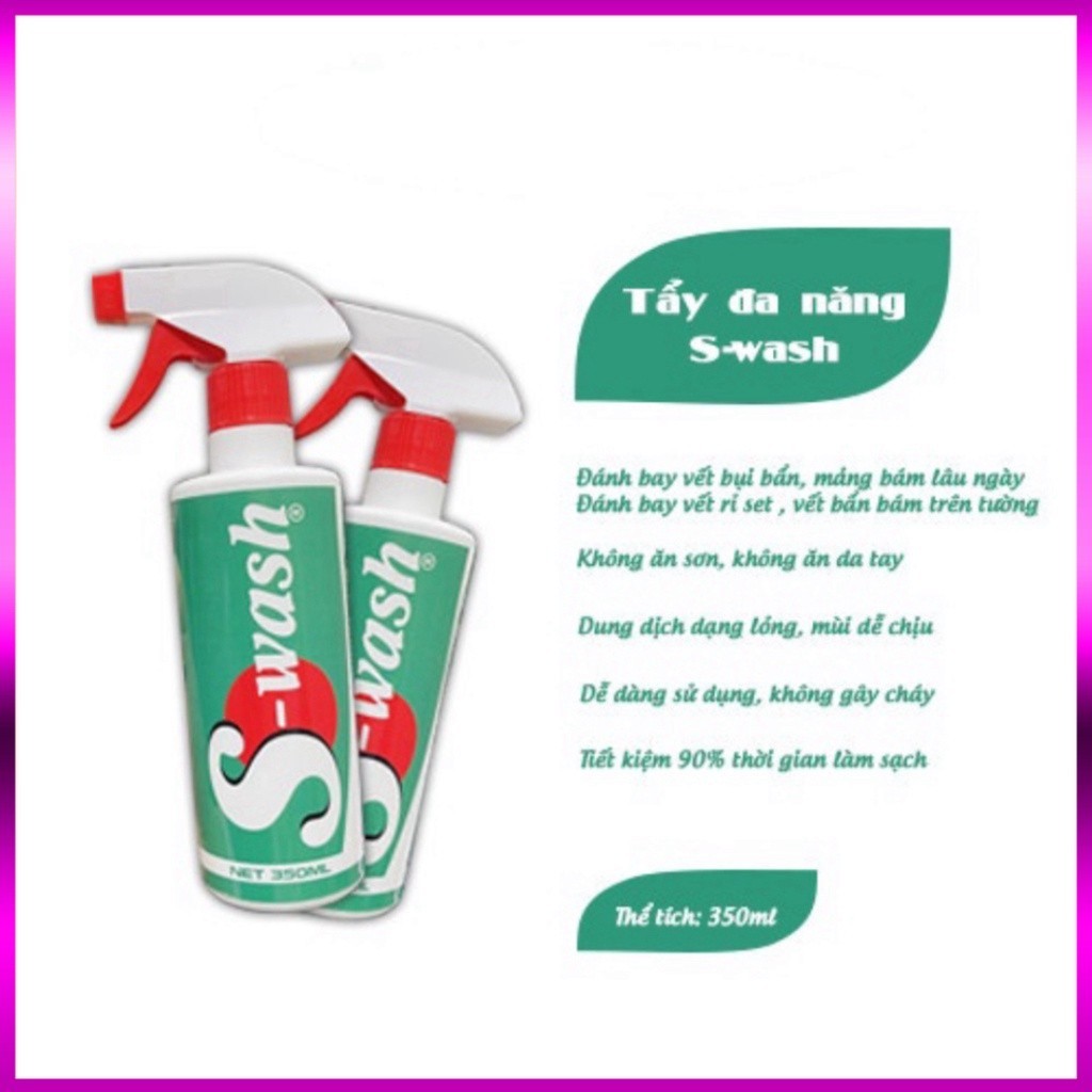 THÔNG TIN SẢN PHẨM : -Xịt tẩy rửa phòng bếp S-Wash là một sản phẩm tẩy rửa đa năng, có thể sử dụng cho nhiều bề mặt khác nhau như inox, gạch men, gương, kính,