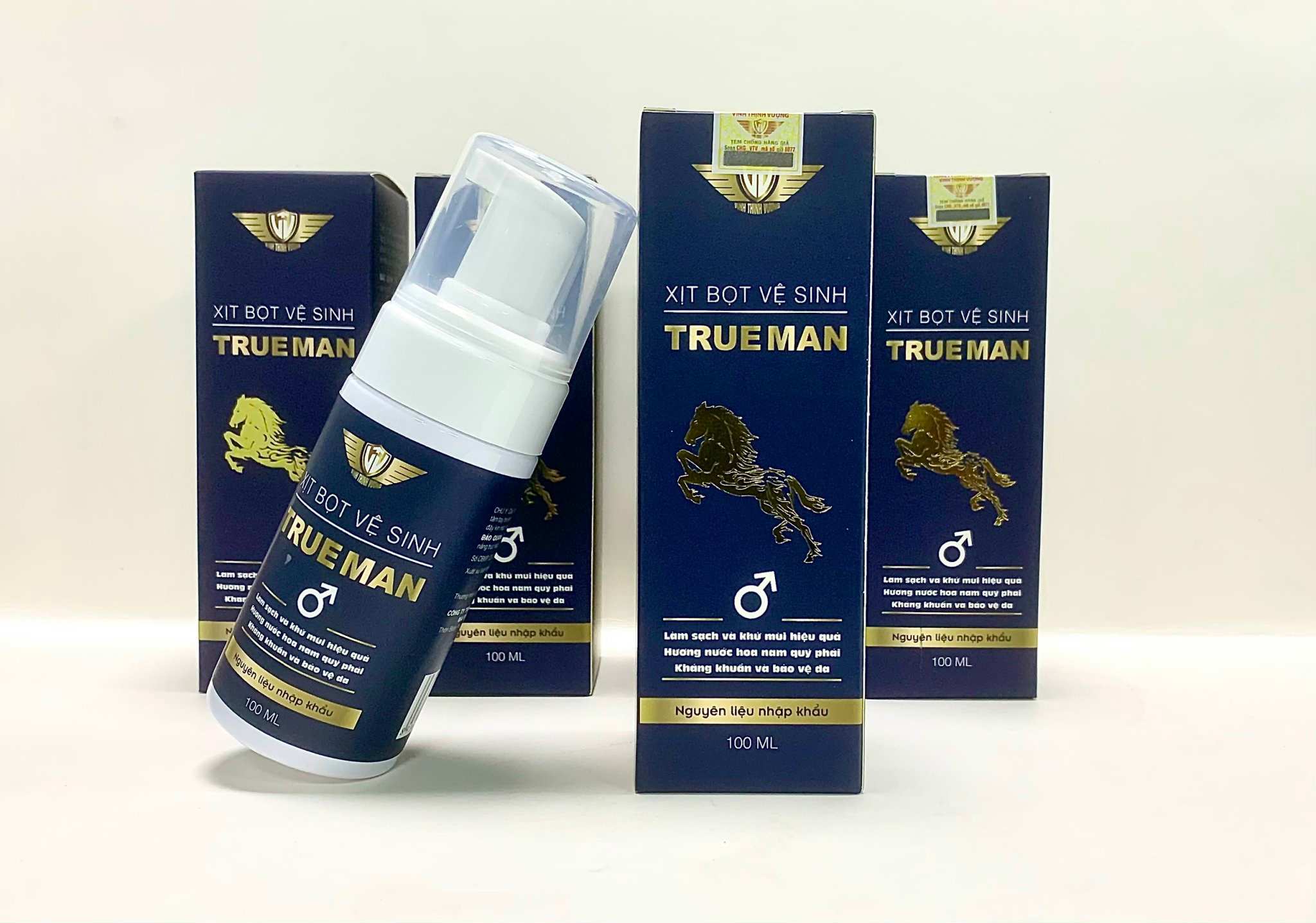 Chai xịt bọt vệ sinh nam giới True Man, 100ml, Kingphar, kháng khuẩn, nấm, khử hôi Xịt Bọt vệ sinh nam giới hương nước hoa TRUEMEN, giúp làm sạch, khử mùi, kháng khuẩn - Chai