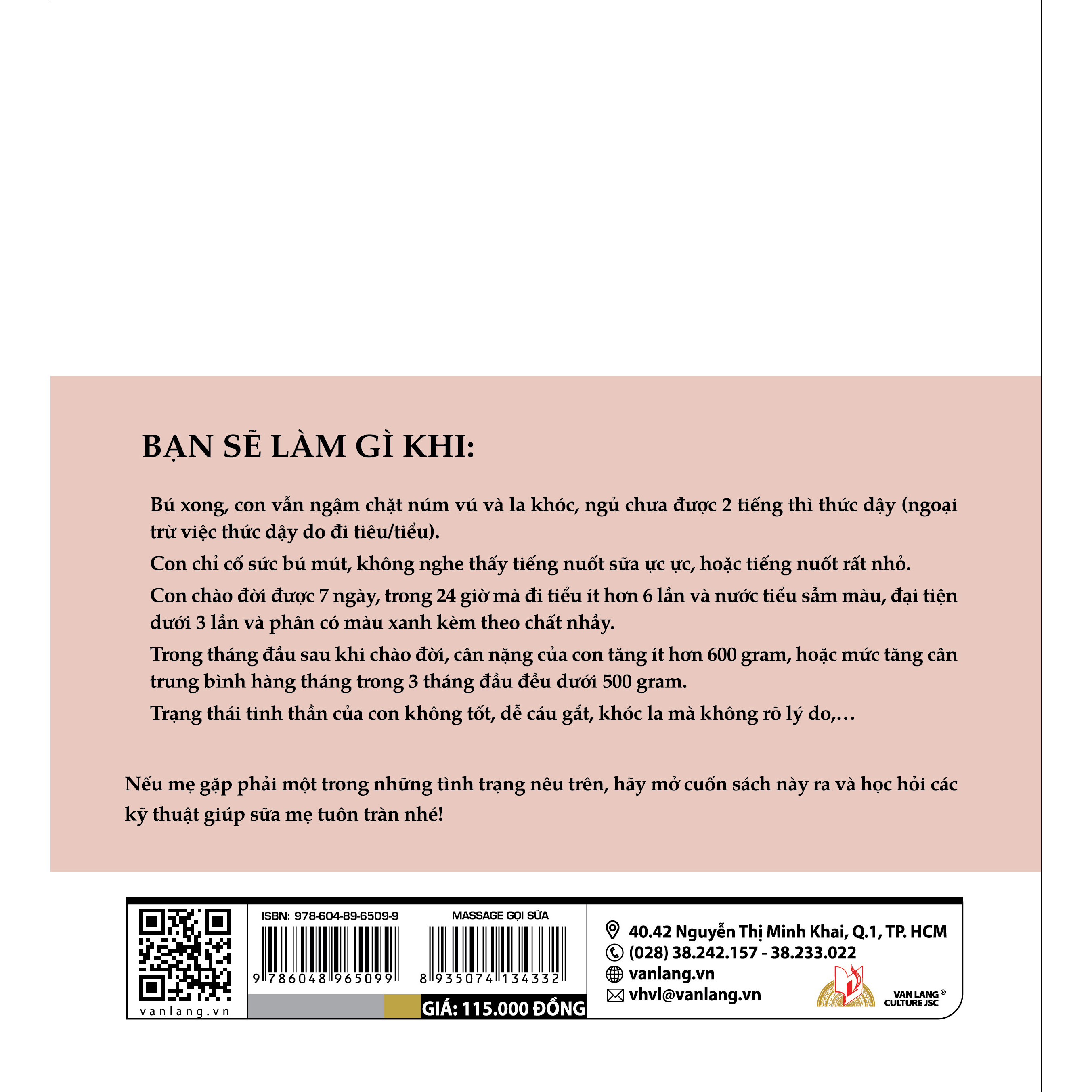 Chăm sóc mang thai và ở cữ - Massage gọi sữa I. Giới Thiệu Sách Bạn sẽ làm gì khi: Bú xong, con vẫn ngậm chặt núm vú và la khóc, ngủ chưa được
