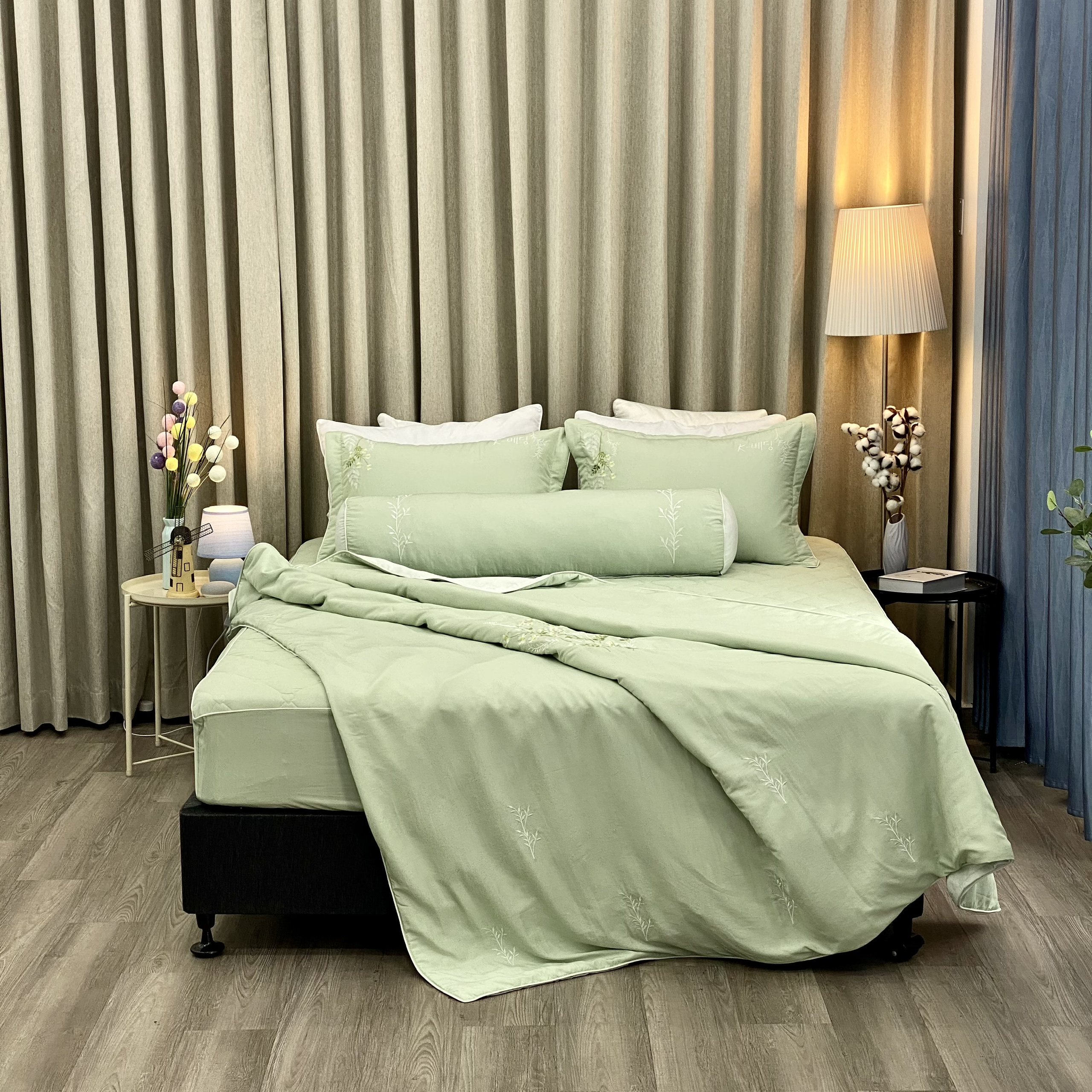 Bộ chăn ga Everon ESB22055 gam màu xanh mát lạnh 100% chất liệu Bamboo sợi tre #Everon #changagoi