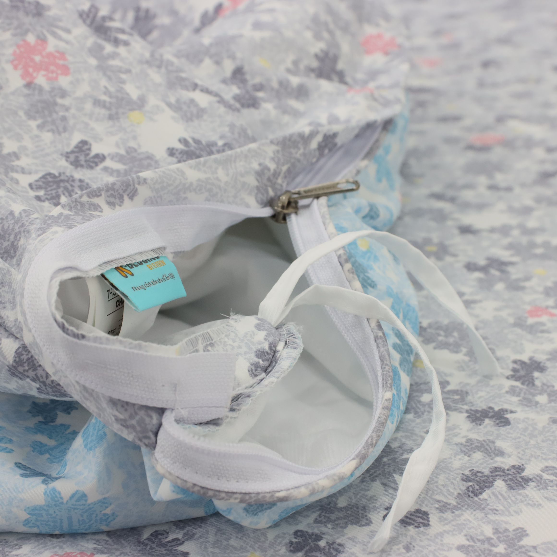 - Có khóa kéo để lồng thêm ruột chăn vào mùa đông (kích thước 1.8 x 2m)
