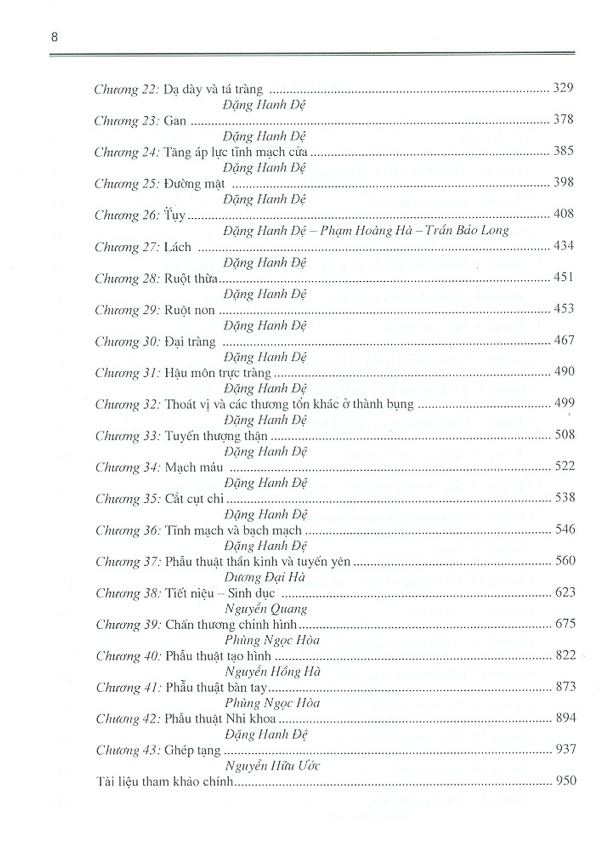 Chẩn đoán và điều trị các bệnh ngoại khoa Chủ biên: GS. Đặng Hanh Đệ Nhà xuất bản: Bộ Y Tế, NXB Giáo Dục Ngôn ngữ: Tiếng Việt Ngày xuất bản 09-2013 Loại bìa Bìa cứng Số trang 700 GIỚI THIỆU SÁCH Tác giả: GS. BS. Đặng Hanh Đệ ( chủ biên) ,cùng 27 tiến sĩ, thạc sĩ, PGS, BS các khoa Phẫu thuật tạo hình- hàm mặt, Khoa phẫu thuật tiêu hóa, khoa chấn thương chỉnh hình, Khoa gây mê hồi sức, Khoa phẫu thuật gan, Khoa phẫu thuật tiết niệu, Khoa phẫu thuật cấp cứu tiêu hóa, khoa phẫu thuật tim mạch và khôngg ngực Bệnh BỆNH VIỆN VIỆT ĐỨC lời giới thiệu, cuốn sách Chẩn đoán và ĐT các bệnh ngoại khoa là cuốn sách đã dược GS.TS.BS Đặng Hanh Đệ cùng các nhà giáo giàu kinh nghiệm của bộ môn ngoại Trường ĐH Y HN biên soạn theo đúng phương châm cung cấp kiến thức cơ bản, hệ thống, nội dung và thuật ngữ chính xác, cập nhật tiến bộ khoa học- kỹ thuật hiện đại của VN. Sách đã được hội đồng chuyên môn thành lập theo quyết định số: 2234/QĐ-BYT ngày 25/06/2013 của Bộ y tế thẩm định và đánh giá cao, được bộ y tế quyết định chính thức công nhận LÀ TÀI LIỆU DẠY-HỌC ĐẠT TIÊU CHUẨN CHUYÊN MÔN CỦA NGÀNH Y TẾ trong giai đoạn hiện nay. Cuốn sách với khoảng trên 1.000 bệnh được đề cập chắc chắn sẽ giúp cho các đồng nghiệp, nhất là ở các tuyến cơ sở, vùng sâu vùng xa tăng cường khả năng thực hành nâng tao cay nghê; chuyển giao công nghệ của đội ngũ thầy thuốc tuyến trên giúp tuyến dướ