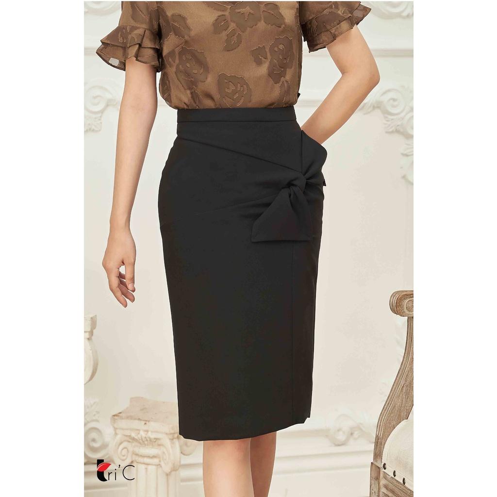 ✨Chân váy ôm, nơ lệch eo Tri'C Luxury C110421 Đen