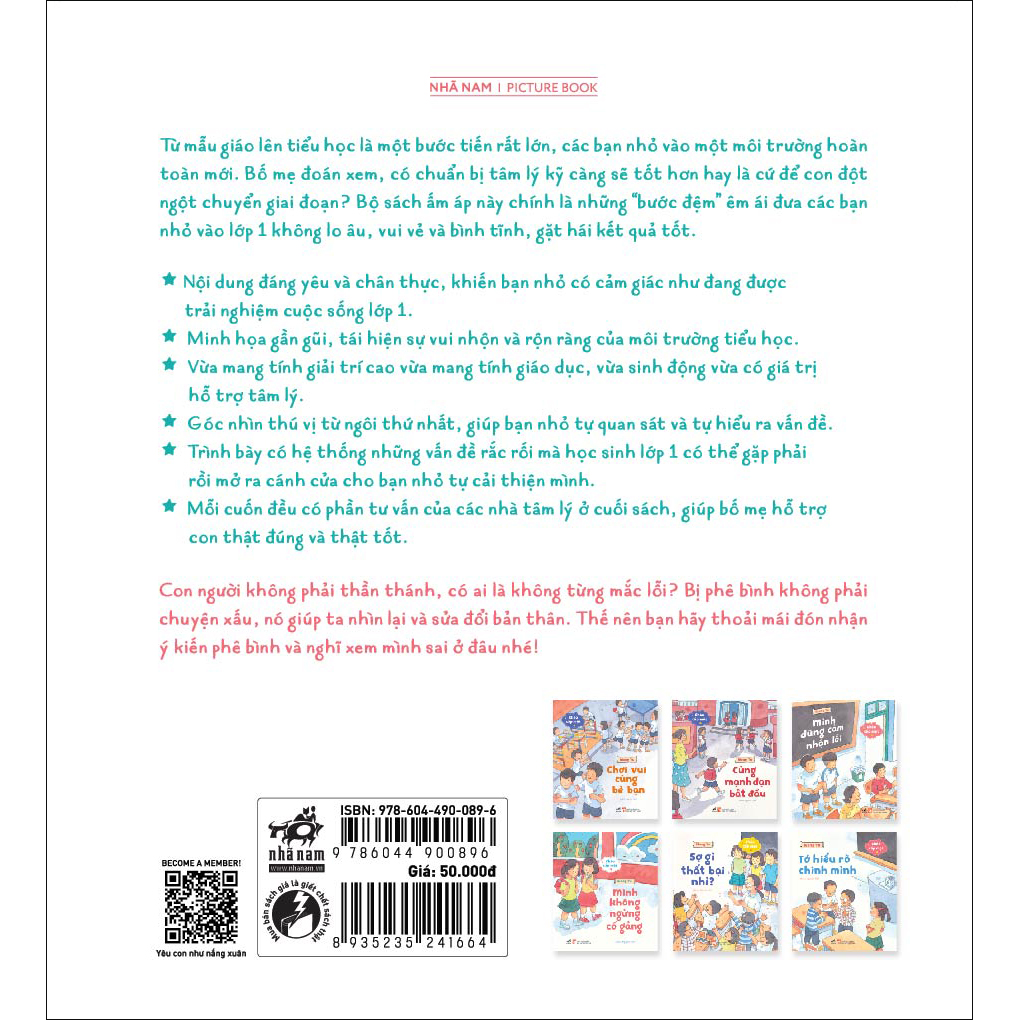 Từ mẫu giáo lên tiểu học là một bước tiến rất lớn, các bạn nhỏ vào một môi trường hoàn toàn mới. Bố mẹ đoán xem, có chuẩn bị tâm lý kỹ càng sẽ tốt hơn hay là cứ để con đột ngột chuyển giai đoạn? Bộ sách ấm áp này chính là những “tấm nệm” êm ái đưa các bạn nhỏ vào lớp 1 không lo âu, vui vẻ và bình tĩnh, gặt hái kết quả tốt.