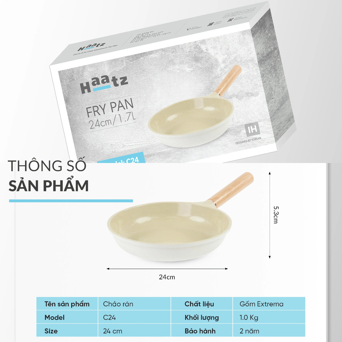 Chảo chống dính phủ gốm Haatz Hàn Quốc size 24cm đáy từ