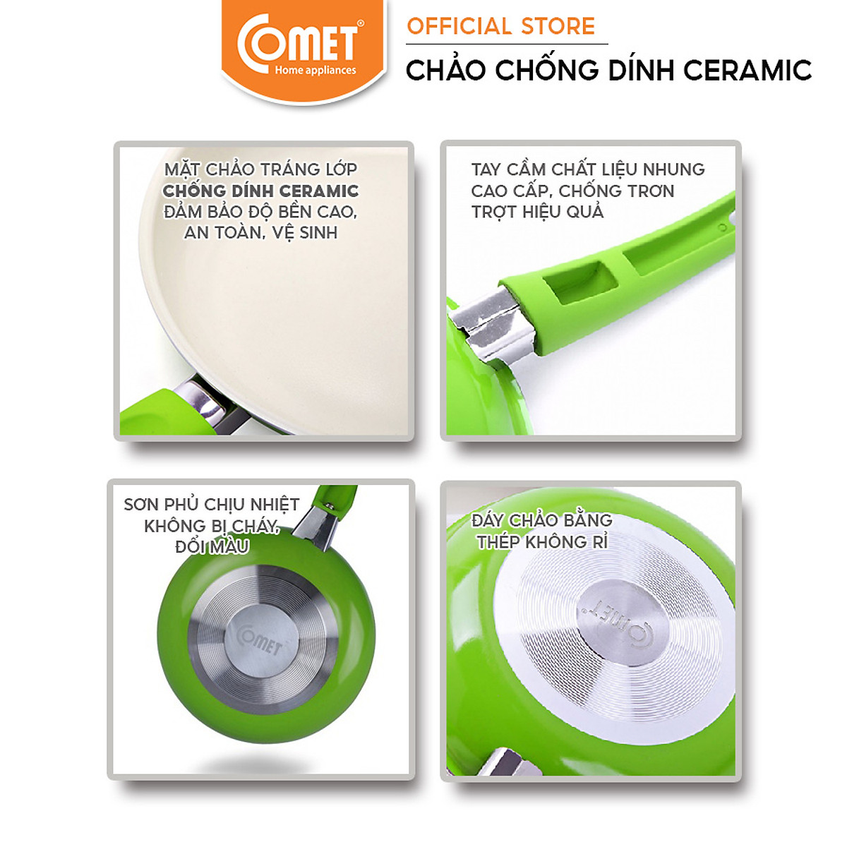 -Chảo ceramic 02 lớp chống dính thương hiệu COMET là món quà thiết thực cho các bà nội trợ, giúp việc nấu nướng thuận lợi và có nhiều lựa chọn hơn, phù hợp với mọi không gian bếp.