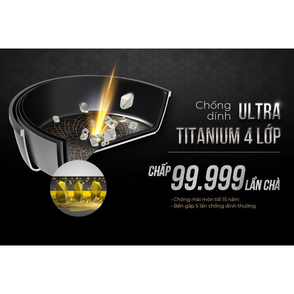 Chảo chống dính Ultra titanium Sunhouse ST28B được phủ lớp chống dính 4 lớp Ultra Titanium (ILAG Thụy Sĩ) có độ bền tới 15 năm, vượt qua thử nghiệm 99,999 lần chà. Chống dính ILAG chứa tinh thể titan giúp chống loại tác động của những chất chua và mặn, không chứa PFOA hay bất kỳ chất gây tranh cãi nào.