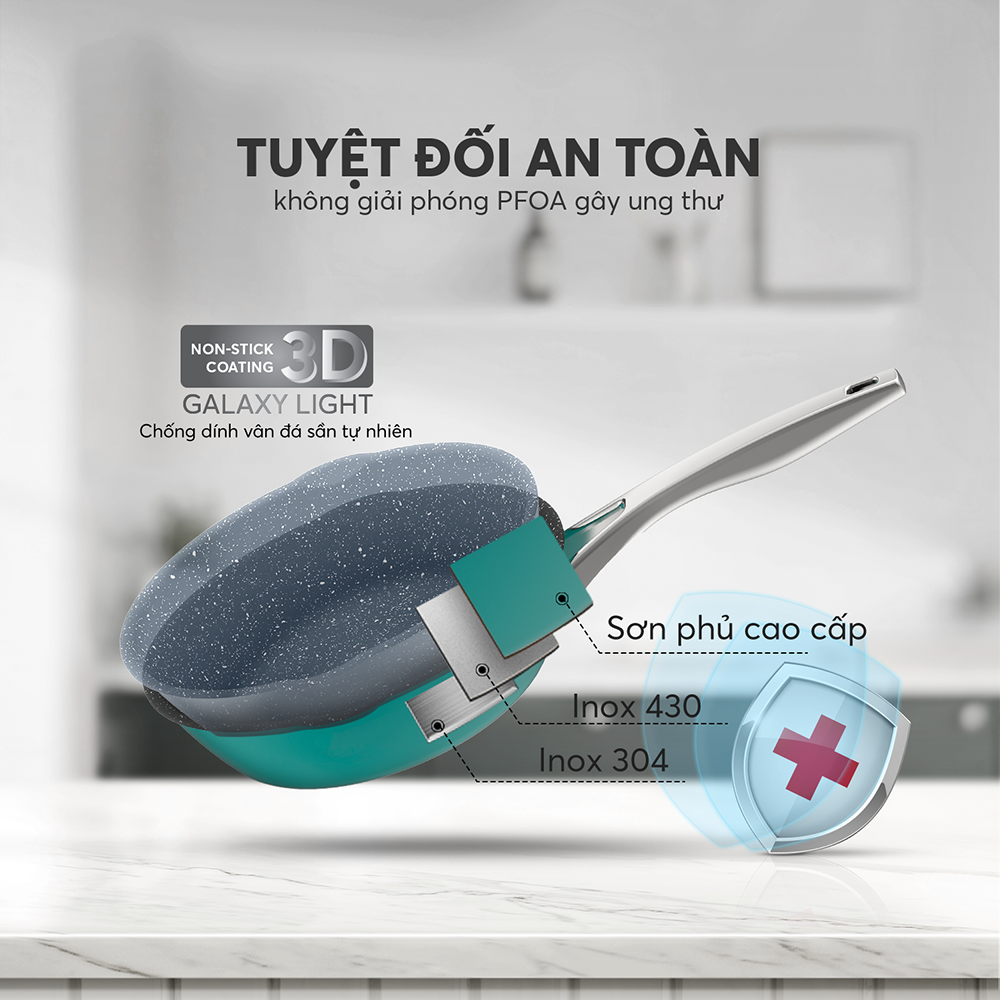 Chất liệu: Inox 304 Kích thước 024 Chào chống dính Whitford Xylan chống dính hàng đầu của Mỹ bền bỉ và an toàn, bảo vệ sức khỏe