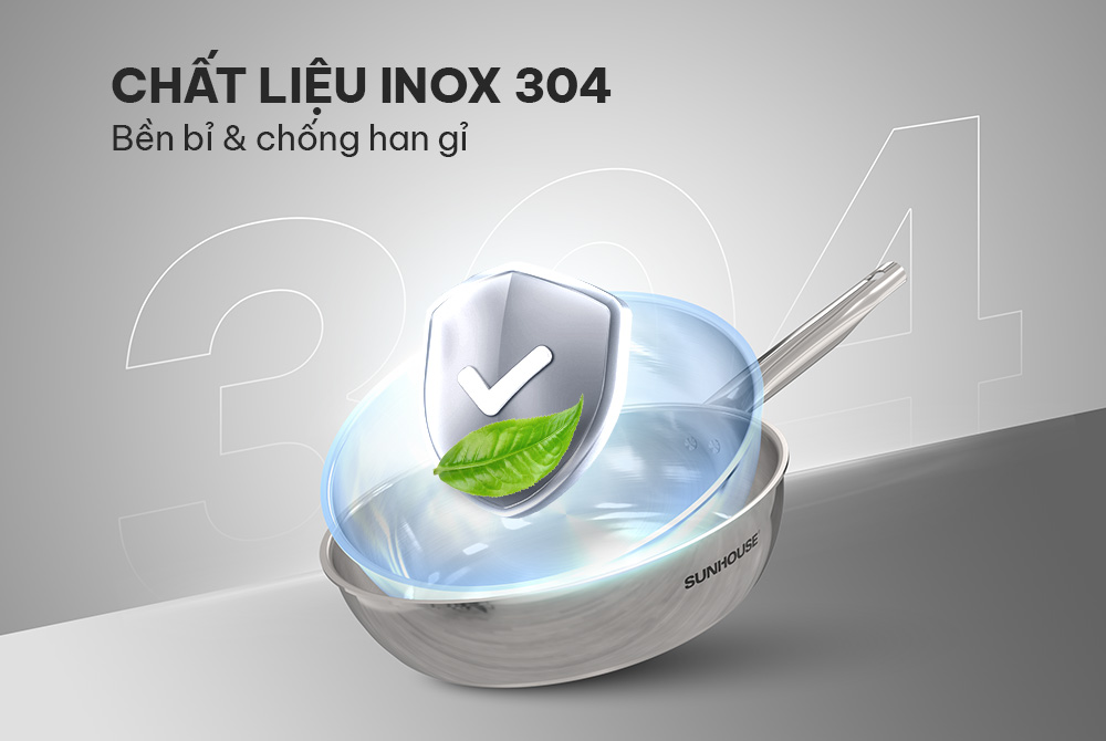 Chảo inox 304 đa lớp Sunhouse 3 lớp inox liền khối Dùng mọi loại bếp