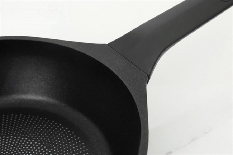 Đáy chảo làm từ inox, thành chảo dày 2.488 mm có chất liệu nhôm đúc nguyên khối an toàn, có độ bền cao, hạn chế biến dạng.