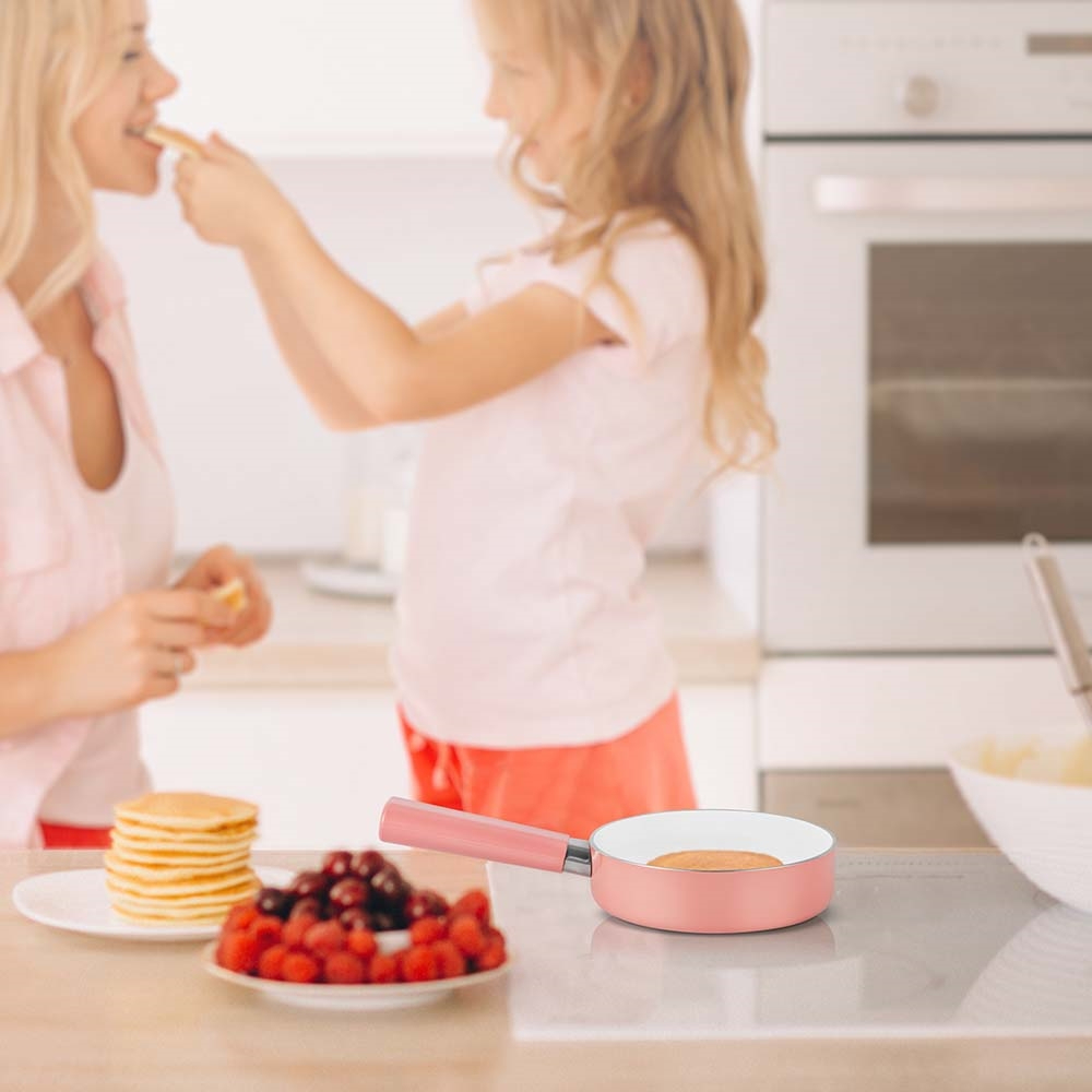 - Chảo sở hữu thiết kế nhỏ gọn không chiếm nhiều diện tích, tông màu pastel độc đáo tạo điểm nhấn cho căn bếp thêm yêu, khẳng định phong cách riêng đầy cuốn hút.