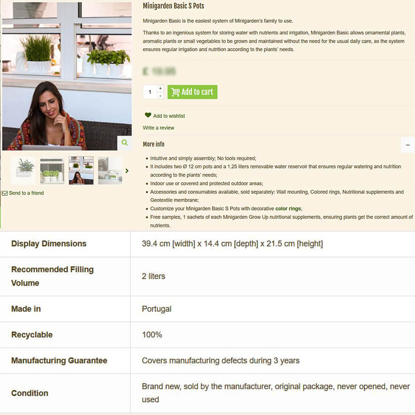 1.Mô Tả Chậu KIT Tự Dưỡng Minigarden Basic: + Nhập khẩu: Bồ Đào Nha + Kích thước Base Chậu: Ngang 38cm x 14 cm x 22 cm. Bảo Hành Chậu Tự Dưỡng Basic lên đến 10