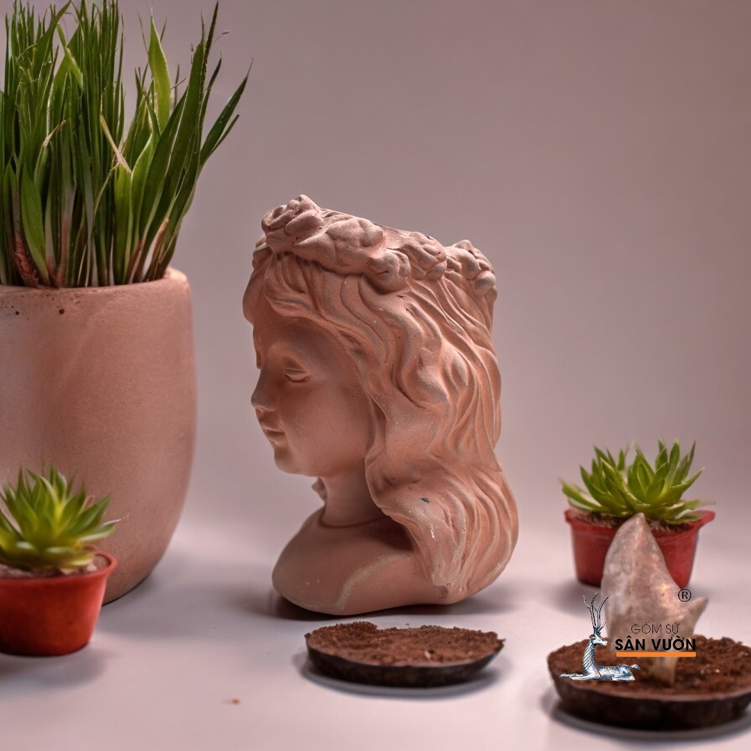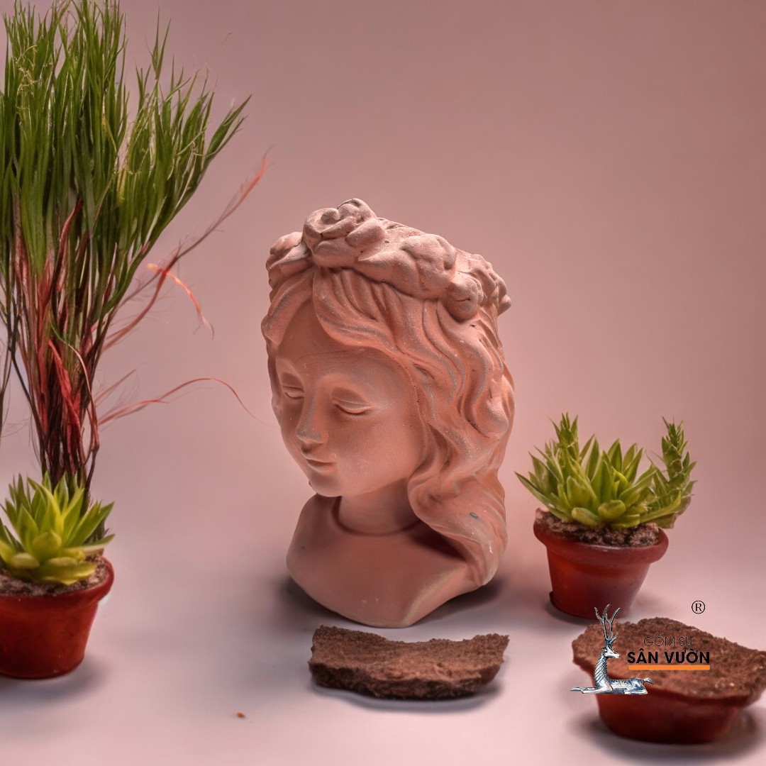 - Tên sản phẩm : Chậu Gốm Đất Nung Hình Cô Gái Anna Tóc Xoăn