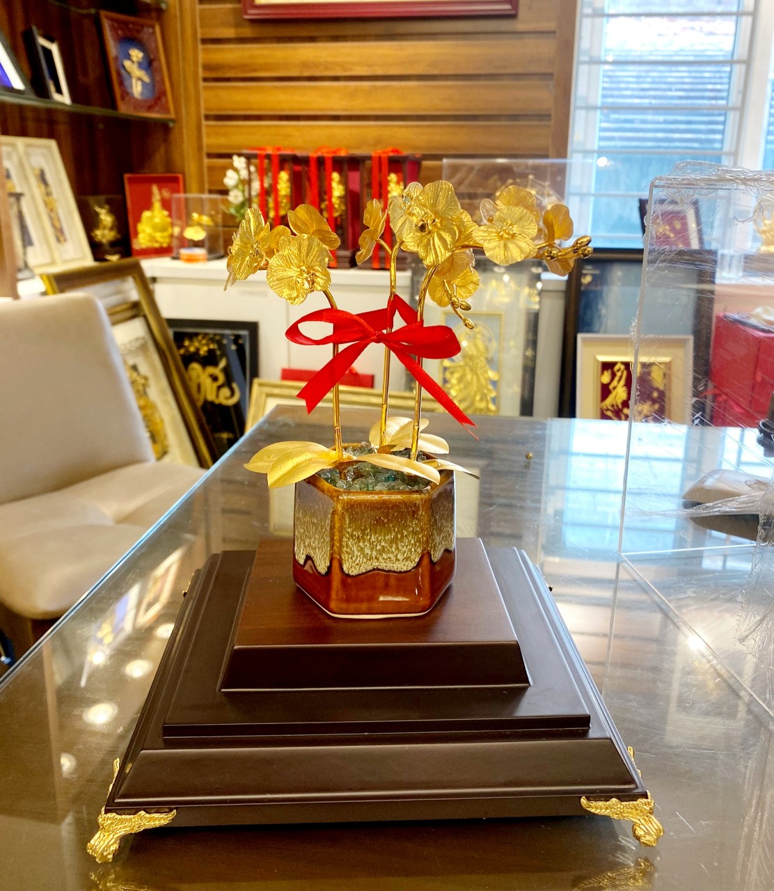Chậu Hoa Lan 4 Dát Vàng 24K