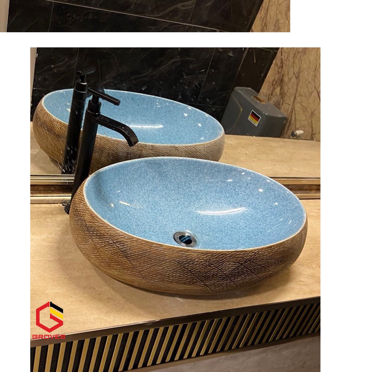 CHẬU VÂN ĐÁ 7 MẦU là mẫu thiết bị vệ sinh GROVES có kiểu dáng đẹp với thiết kế hình elip thu hút, men sứ chống bám bẩn, lòng chậu sâu và rộng ,