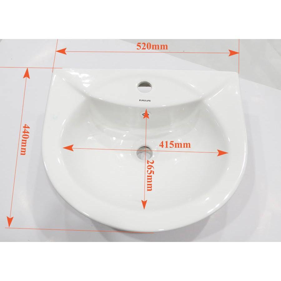 Chậu Lavabo sứ men Nano tuyết chân treo Eurolife EL-LVB01 (Trắng): * Hãng sản xuất : Eurolife Việt Nam * Chất liệu : Sản phẩm được phủ men Nano tuyết, trắng sáng với thời gian,