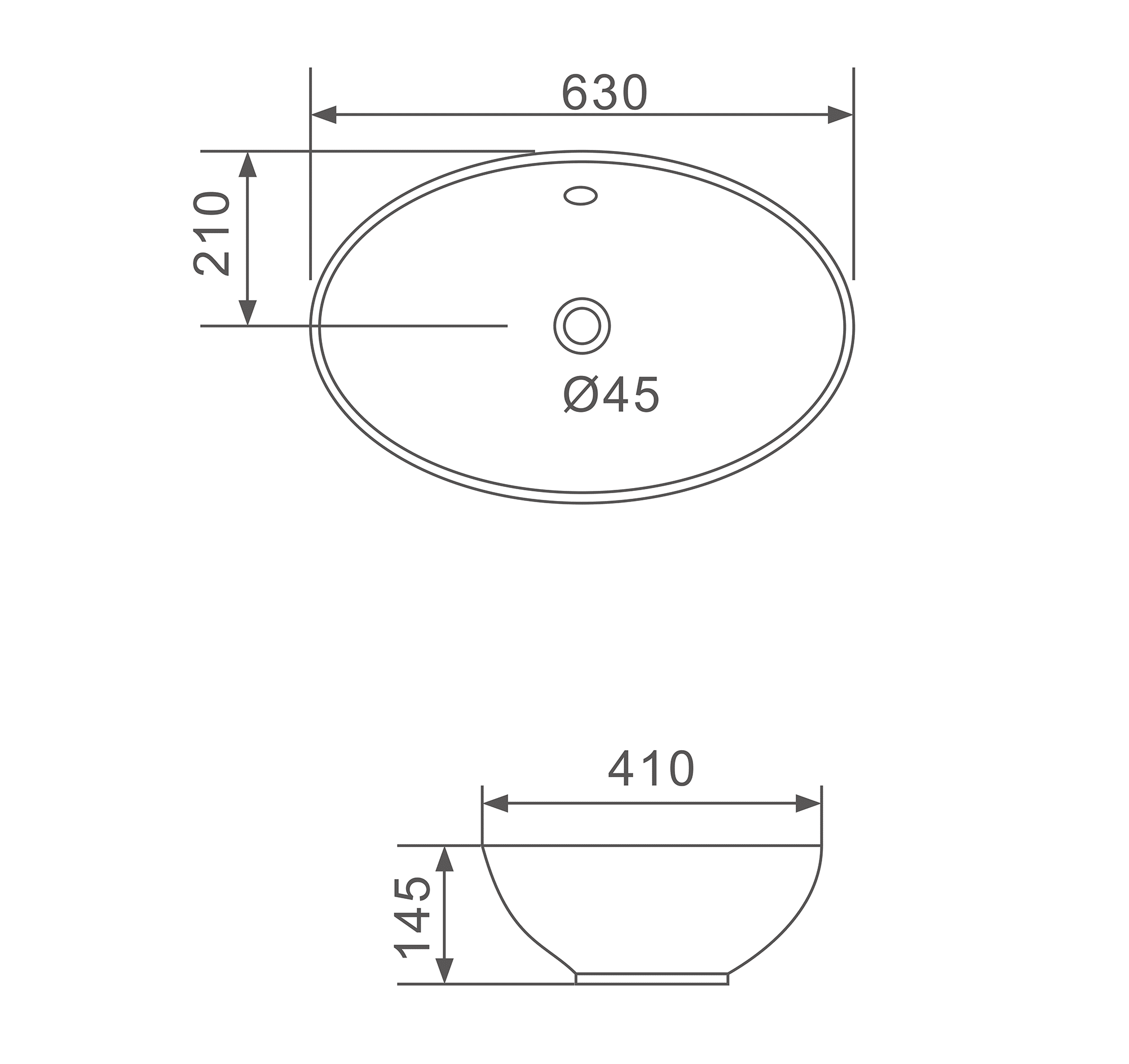 Kích thước: 630x410x145mm (Sản phẩm không bao gồm vòi lavabo, bộ xả….)