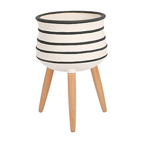✨Chậu trang trí bằng sành DEARY hình giọt nước màu be họa tiết sọc nâu, có chân đỡ bằng gỗ, kích thước 33x50cm (RxC) | Index Living Mall - Phân phối độc quyền tại Việt Nam