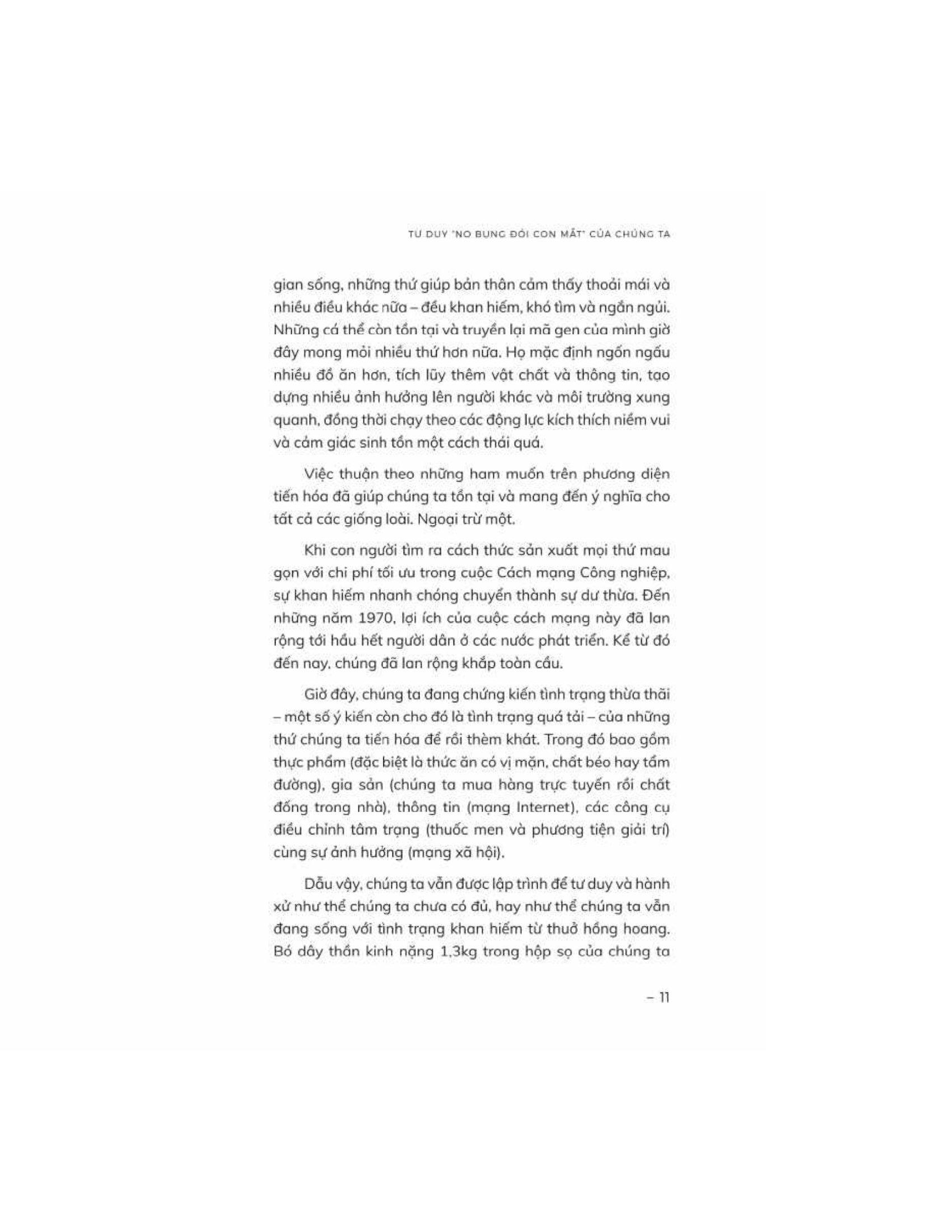 Cuốn sách đi sâu vào khoa học đằng sau những ham muốn này, rút ra từ khoa học thần kinh, tâm lý học và nhân chủng học. Cuốn sách cũng đưa ra những phương pháp đơn giản giúp chúng ta hướng tới lối sống “vừa đủ”,, củng cố những thói quen lành mạnh và sống trọn vẹn cũng như trân trọng những gì m.ình có, bao gồm: