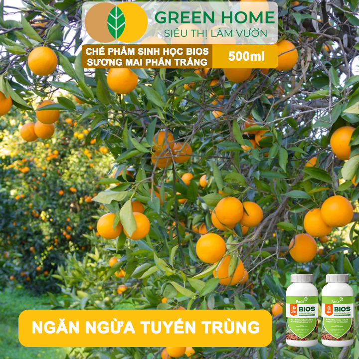 GIÁ SỈ SIÊU LỢI: Giá chỉ còn 159.900đ Số lượng: 24 chai Giá chỉ còn 165.900đ Số lượng: 5 chai ĐẶC ĐIỂM NỔI BẬT : - Hiệu Lực Nhanh Mạnh - Dứt Điểm Phấn Trắng Đánh Tan Sương Mai - Tiêu Trừ: Sương Mai Phấn Trắng - Chế Phẩm Sinh Học Từ Thảo Mộc - Giải Pháp Canh Tác Không Độc Hại - Được hội đồng khoa học cấp nhà nước chứng nhận Chế Phẩm Sinh Học Bacte Bios Sương Mai Phấn Trắng, Green Home, Chai 500ml, Từ Thảo Mộc, Hiệu Lực Nhanh Mạnh Dứt Điểm Phấn Trắng Đánh Tan Sương Mai Tiêu Trừ: Sương Mai Phấn Trắng MÔ TẢ SẢN PHẨM : - Thành Phần : 16% cao chiết xuất quế (chứa Cinnamyl Acetate > 0.02%); Chitosan: 1.1%; Phụ gia đặc biệt và dung môi vừa đủ. - CÔNG DỤNG: + Tiêu trừ nấm bệnh: Bios Sương Mai Phấn Trắng tiêu trừ hơn 87% nấm gây bệnh phấn trắng và sương mai trên cây chỉ sau 3 giờ. + Ngăn ngừa tuyến trùng: Bios Sương Mai Phấn Trắng phòng ngừa hiệu quả các loại tuyến trùng gây bướu rễ, thối rễ. + Kích thích phát triển rễ: Bios Sương Mai Phấn Trắng như dạng vắc xin cho cây, kích thích hệ rễ phát triển mạnh mẽ, giúp cây trồng hấp thụ dinh dưỡng tốt hơn. Tiêu trừ nấm bệnh: Bios Sương Mai Phấn Trắng tiêu trừ hơn 87% nấm gây bệnh phấn trắng và sương mai trên cây chỉ sau 3 giờ. Ngăn ngừa tuyến trùng: Bios Sương Mai Phấn Trắng phòng ngừa hiệu quả các loại tuyến trùng gây bướu rễ, thối rễ. Kích thích phát triển rễ: Bios Sương Mai Phấn Trắng như dạng vắc xin cho cây, kích thích hệ rễ phát triển mạnh mẽ, giúp cây trồng hấp thụ dinh dưỡng tốt hơn. HƯỚNG DẪN SỬ DỤNG : * Cây ăn trái: Sầu riêng, Cam, Quýt, Bưởi, Chanh dây, Đu đủ.... - Pha chai 500ml với 200 lít nước sạch, phun ướt đẫm thân, lá, cành, rễ, hay cho vào hệ thống tưới nhỏ giọt gốc. * Cây có củ: Khoai lang, Khoai tây, Cà-rốt, Củ cải,…