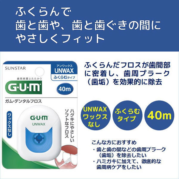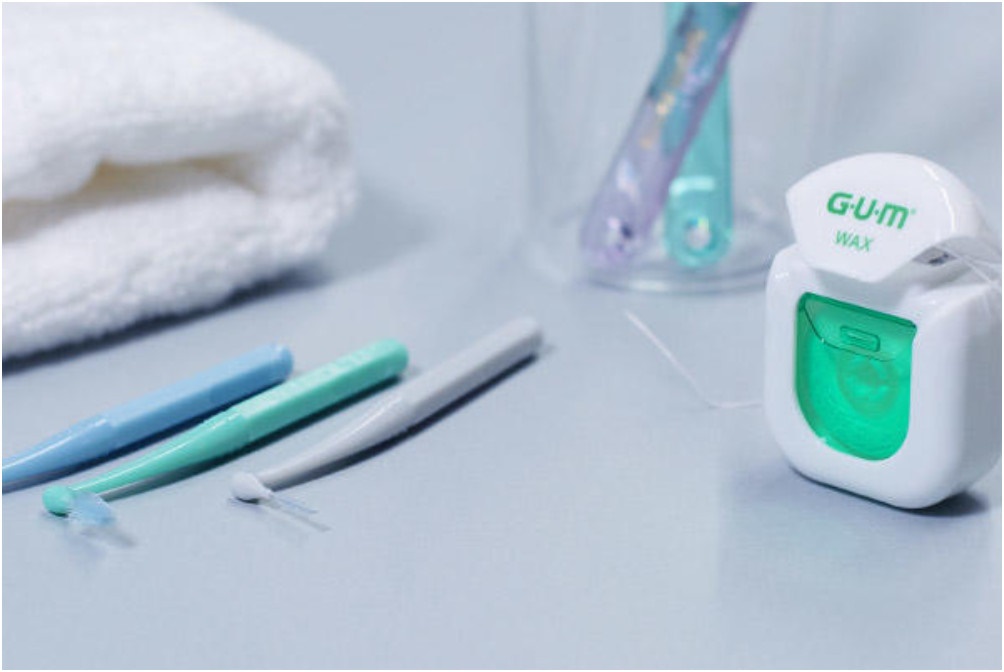 - Chỉ nha khoa bằng bọt biển Sunstar Gum với sợi chỉ phồng vừa khít giữa các kẽ răng.