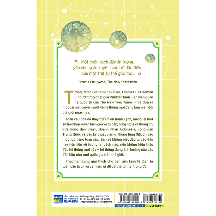 Chiếc Lexus & Cây Ôliu (Tái Bản 2020) Trong cuốn Chiếc Lexus Và Cây Ô Liu, Thomas L. Friedman, người từng đoạt giải Pulitzer, bình luận viên quan hệ quốc tế của The New York Times, đưa ra một cái nhìn xuyên suốt về hệ thống quốc tế mới đang làm biến đổi tình hình thế giới ngày nay. Toàn cầu hóa đã thay thế Chiến tranh Lạnh, mang lại sự hội nhập về tư bản, công nghệ và thông tin xuyên qua biên giới quốc gia - hội tụ nông dân Brazil, giới doanh nhân Indonesia, dân làng Trung Quốc và kỹ thuật viên ở Thung lũng Silicon vào một ngôi làng toàn cầu chung. Bạn không thể hiểu bản tin buổi sáng, biết nơi nào để đầu tư hay tiên liệu về tương lai nếu bạn không hiểu thấu đáo hệ thống mới này - đang ảnh hưởng sâu sắc đến hầu như mọi quốc gia trên thế giới ngày nay. Friedman giải thích cho bạn nền kinh tế điện tử toàn cầu này là gì và cần làm gì để con người có thể tồn tại trong đó. Qua những câu chuyện sinh động từ những chuyến đi khắp nơi, Friedman miêu tả cuộc xung đột giữa chiếc Lexus và cây Ô Liu - tượng trưng cho quan hệ căng thẳng giữa hệ thống toàn cầu hóa hiện đại và những sức mạnh văn hóa, địa lý, truyền thống và cộng đồng từ ngàn xưa. Tác giả mô tả cặn kẽ sự chống đối mãnh liệt do toàn cầu hóa gây ra cho những con người bị thua thiệt. Tác giả cũng nói rõ những gì chúng ta cần làm để giữ cân bằng giữa chiếc xe Lexus và cây Ô Liu. Trong ấn bản lần này, Friedman đã mở rộng và cập nhật những lập luận và phân tích dễ gây tranh cãi của mình, khiến cuốn sách trở nên thiết yếu đối với những ai quan tâm đến dòng chảy thế giới ngày nay. ------ oOo ------ “Một cuốn sách đầy ấn tượng, gần như quán xuyến toàn bộ đặc điểm của một trật tự thế giới mới” (Francis Fukuyama, The New Statesman) “Chiếc Lexus Và Cây Ô Liu có lẽ là cuốn sách không thể thiếu của thiên niên kỷ mới … Cực kỳ thông minh!” (The Dallas Morning News) “Cuốn Chiếc Lexus Và Cây Ô Liu đưa ra giải đáp hay nhất (và lý thú nhất) cho câu hỏi ‘Toàn cầu hoá là gì?’. Frieldman biết cách giải thích những điều cao siêu trong kỹ thuật và tài chính bằng những hình ảnh sinh động cùng lối so sánh rất thuyết phục… Frieldman không chấp nhận những giải đáp hiển nhiên. Ông cũng không phóng đại những nhận định của mình khi không có đủ chứng cứ - điều này đã tăng cường hơn nữa tính học thuật cho một cuốn sách vốn dĩ đã rất hay và dễ đọc” (The New York Times)