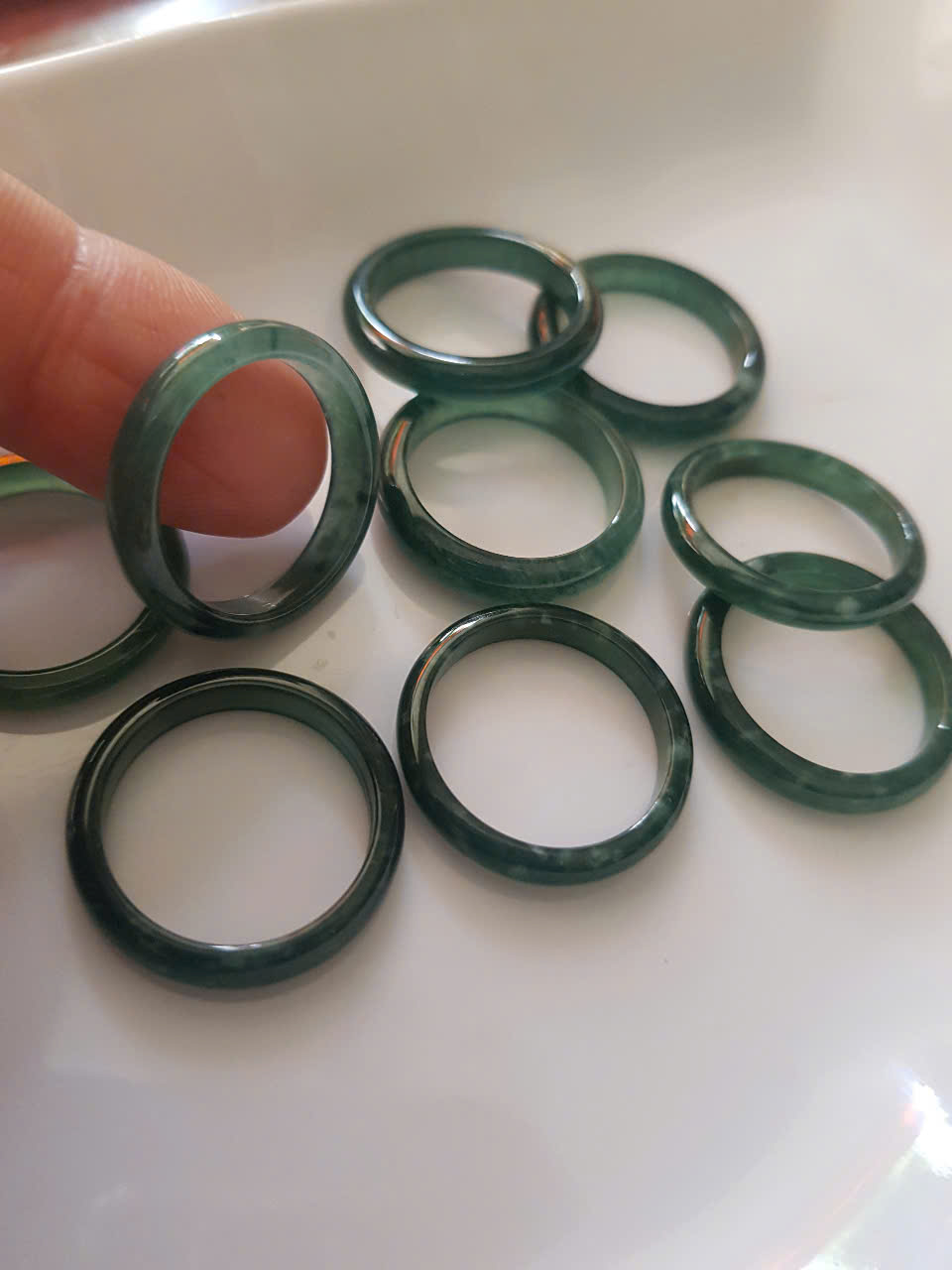 Chất liệu: Cẩm Thạch tự nhiên Kích thước: Nhẫn bản nhỏ Ni 16mm x cao 3mm x dày 2mm