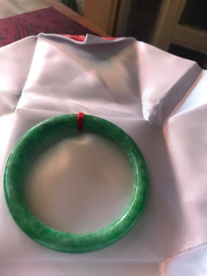 VÒNG BẢN HẸ A SIZE 49 ĐÁ CẨM THẠCH TỰ NHIÊN MÀU XANH LÁ ĐẬM Ở GIỮA LAM TRẮNG ĐỀU VÒNG NỮ 42KG ĐẾN 52KG ĐEO Ạ Sản phẩm này là tài sản cá