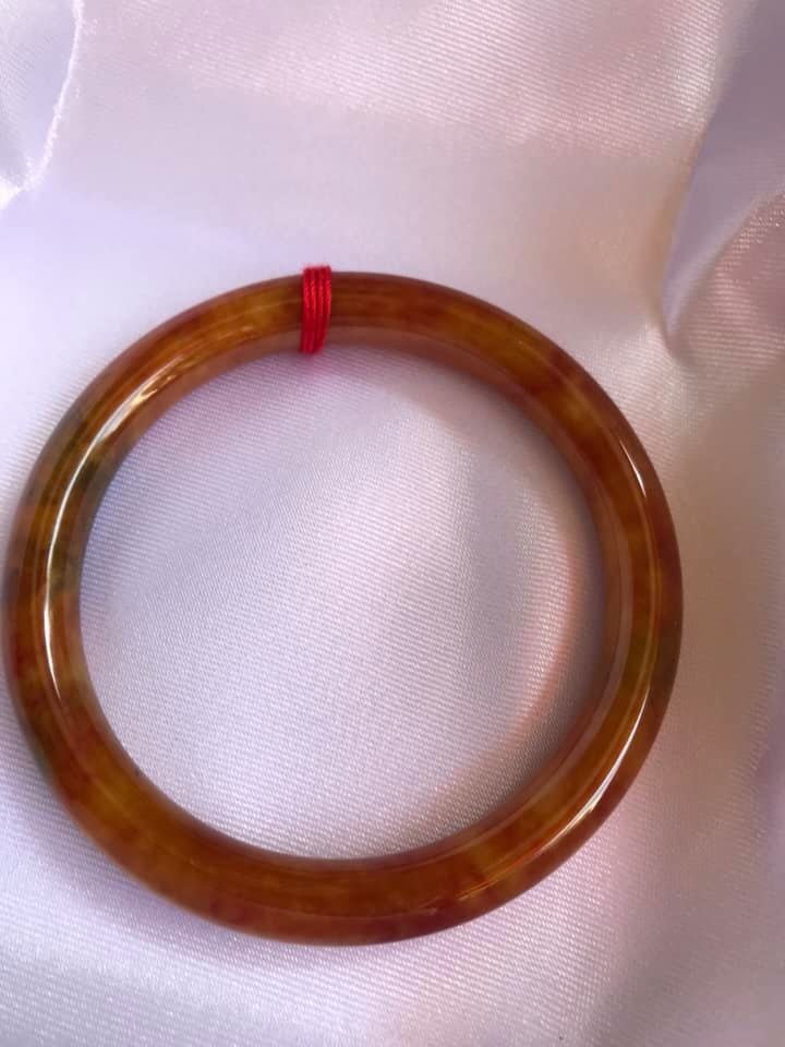 💕💦💕Vòng cẩm thạch Tứ Quý đẹp 51mm xdầy 7,5mm Màu Cam Bông Xíu Xanh Nhẹ bóng đẹp lắm 50kg-56kg480k