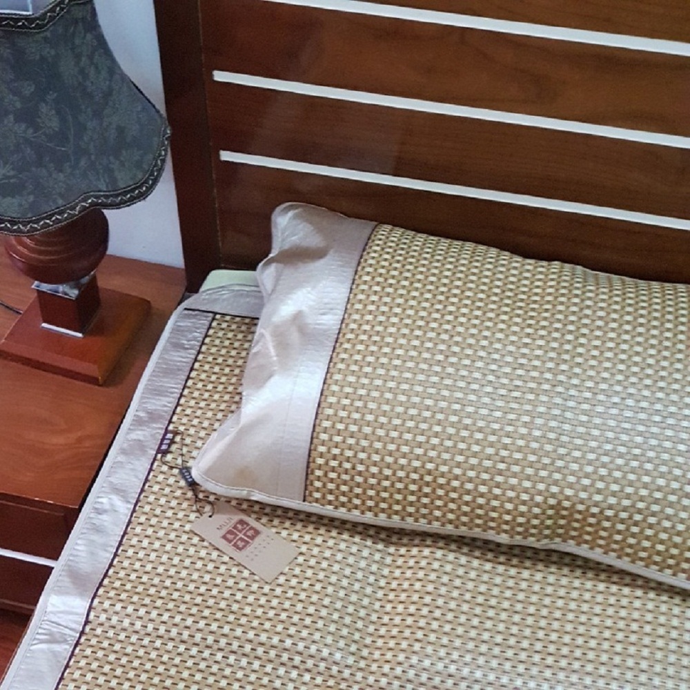 Chiếu điều hòa xuất Nhật hàng cao cấp nằm được 2 mặt (bao gồm túi đựng + 2 vỏ gối) Chất liệu: Mây tự nhiên – lụa Viscose, nằm được cả 2 mặt Kích