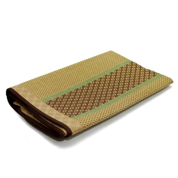Chiếu điều hòa sợi mây tổng hợp được thiết kế với màu sắc hài hòa (vàng nâu) cùng những đường nét hoa văn đẹp và sang trọng. Chiếu gồm 2 lớp lớp sợi mây tổng hợp ở phía trên và lớp vải ở phía dưới, trên cả 2 lớp là những lỗ thoát khí nhỏ tạo ra sự lưu thông không khí và điều hòa nhiệt độ, giúp chiếu không bị bí.