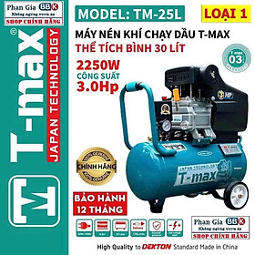 Máy nén khí có dầu 30L TMAX sản xuất theo công nghệ hiện đại củaliên doanh được thiết kế nhỏ gọn với dung tích bình 30L,hoạt động bền bỉ, và chi phí phù hợp là lựa chọn số 1 cho khách hàng đang cónhu cầu sắm một chiếc máy bơm hơi cho gia đình hay sử dụng trong tiệm sửa xequy mô nhỏ.