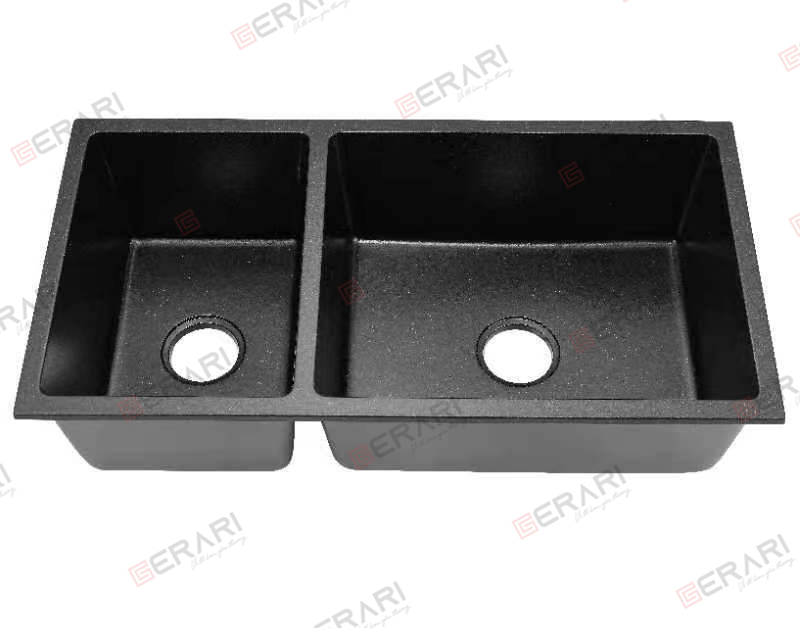 Thông tin chi tiết Chậu rửa 2 hố lệch phụ kiện đi kèm chât liệu đá Granit cao cấp GERARI mã 9047
