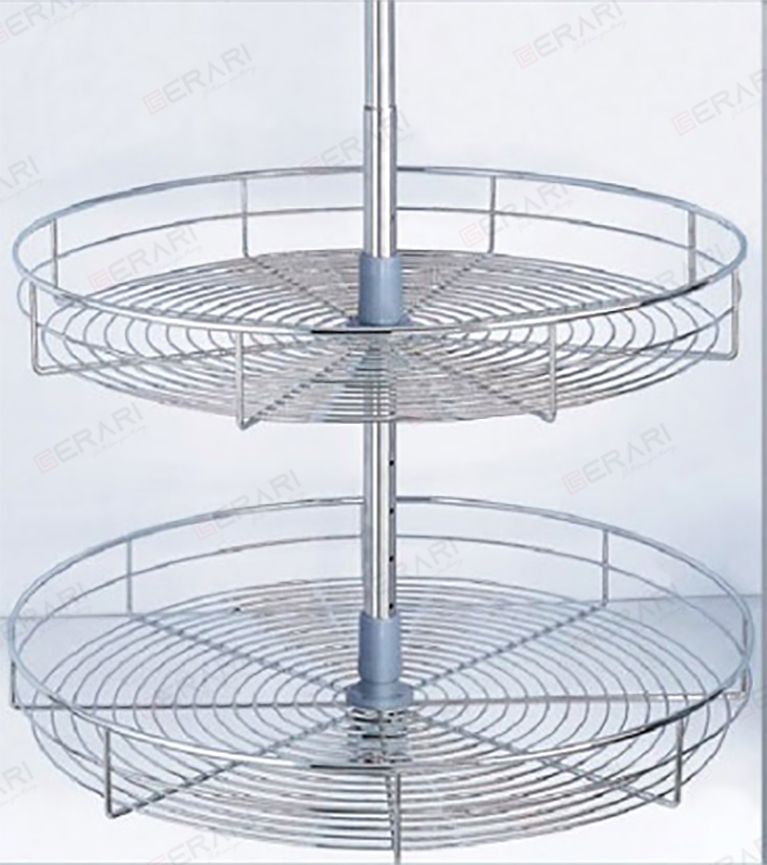 - Thiết kế 1 trục cố định ở giữa và 2 mâm inox nan có thể xoay.