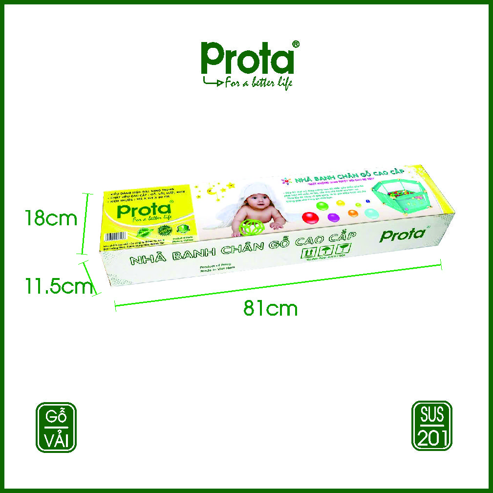 Sản phẩm: Nhà banh, kiêm làm cũi kết cấu chân gỗ cao cấp Prota vừa cho ra mắt thị trường, đã được thử nghiệm cho các bé sử dụng trong 1 thời gian dài. Đã tạo sự hài lòng rất cao ở các bậc cha mẹ.