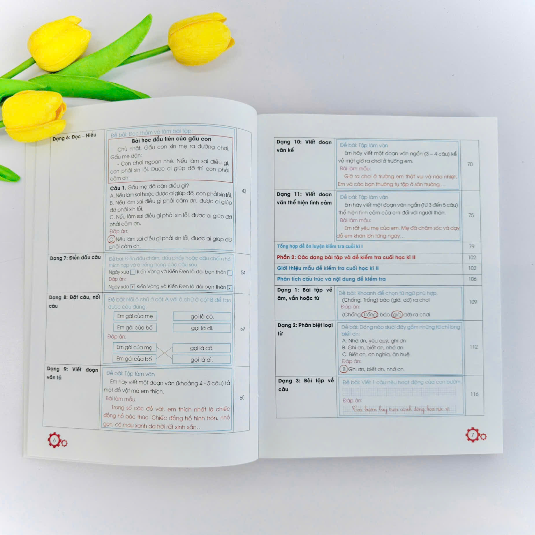 Nội dung của sách được chia thành hai phần tương ứng với kì kiểm tra học kì I và II, mỗi phần gồm 3 nội dung chính: