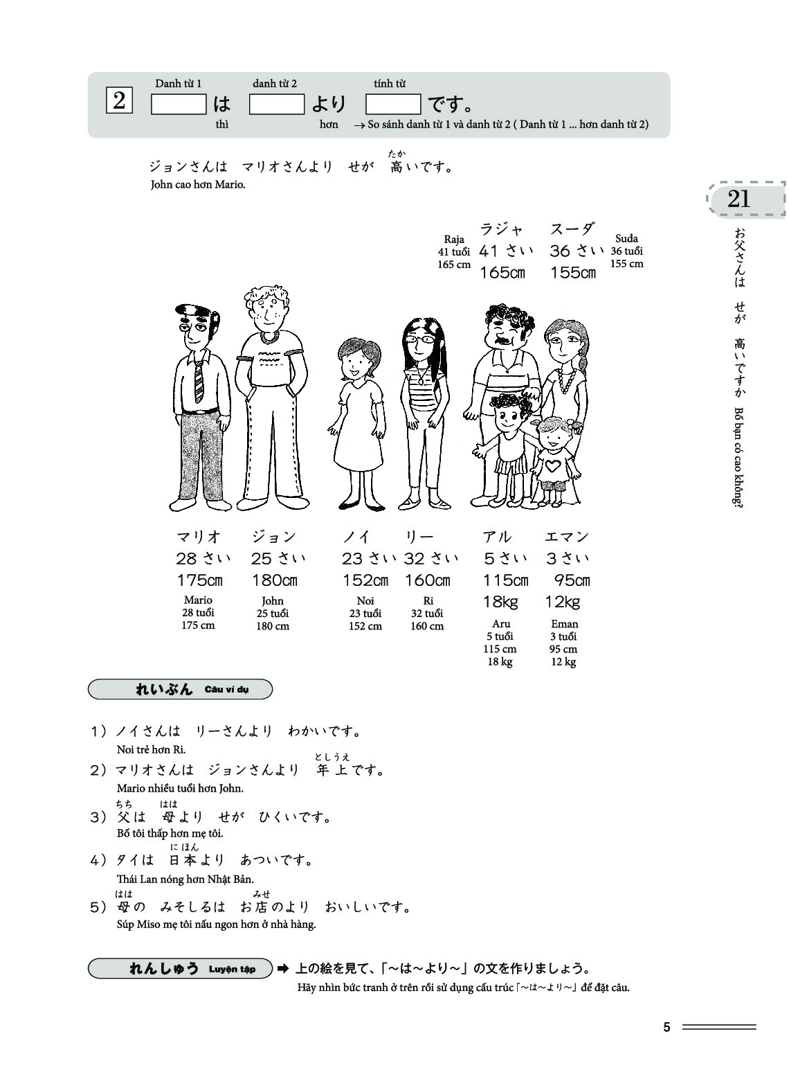 - Nội dung của cuốn sách được tạo thành bởi 2 phần đó là “Các bài khóa từ 21 đến 40” và “Học chữ cái”. Phần ngữ pháp & các mẫu câu là đạo cụ quan trọng để hỗ trợ người học có thể nói, giao tiếp tốt tiếng Nhật.